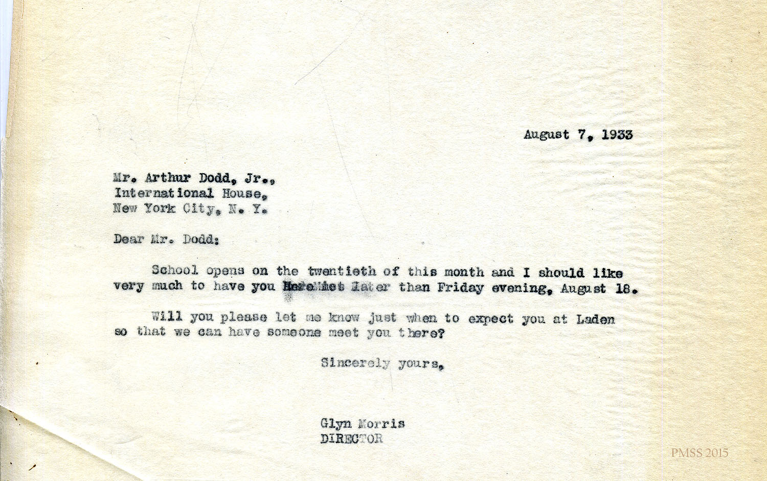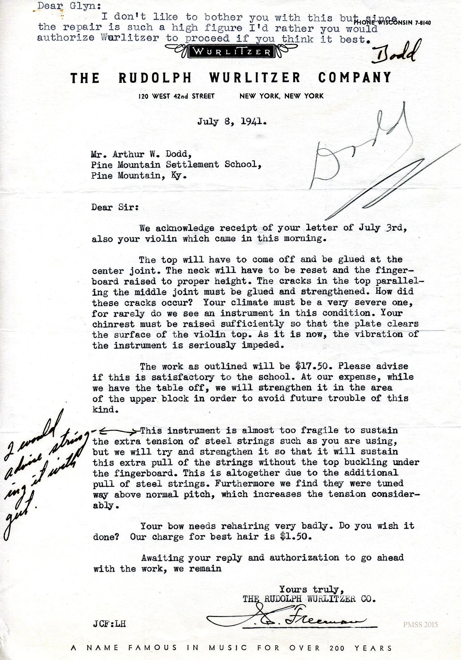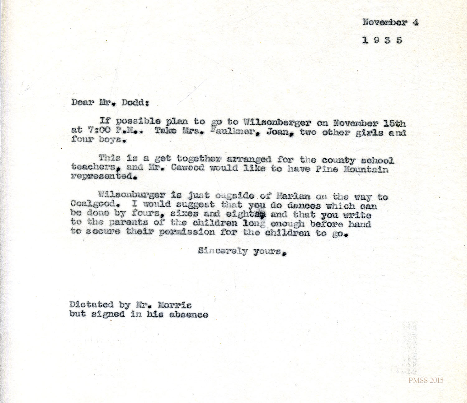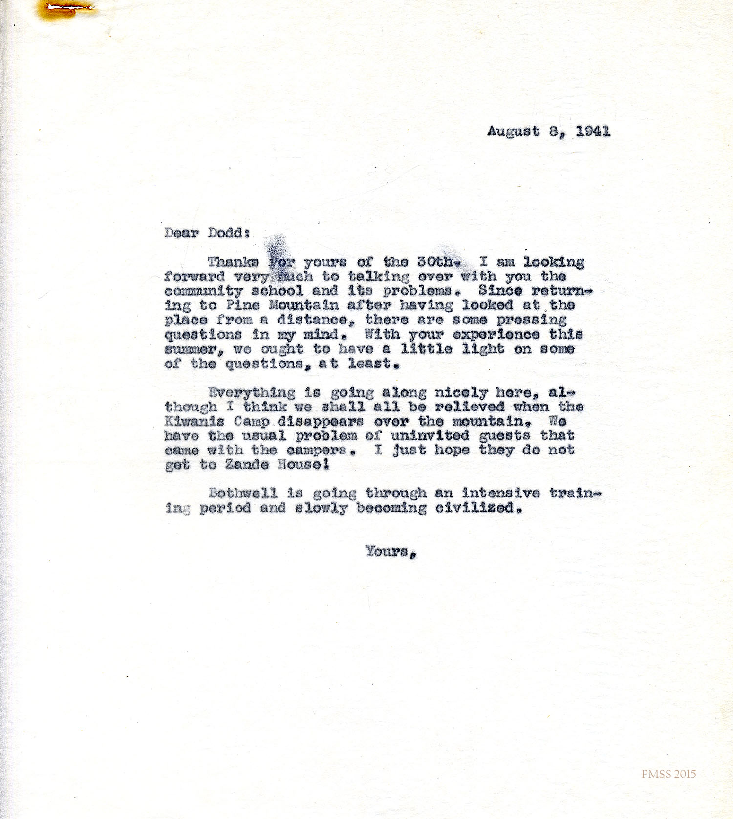 Glyn Morris to Mr. and Mrs. Dodd – PMSS contract for 1942-1943.[045] Oct 30, 1941