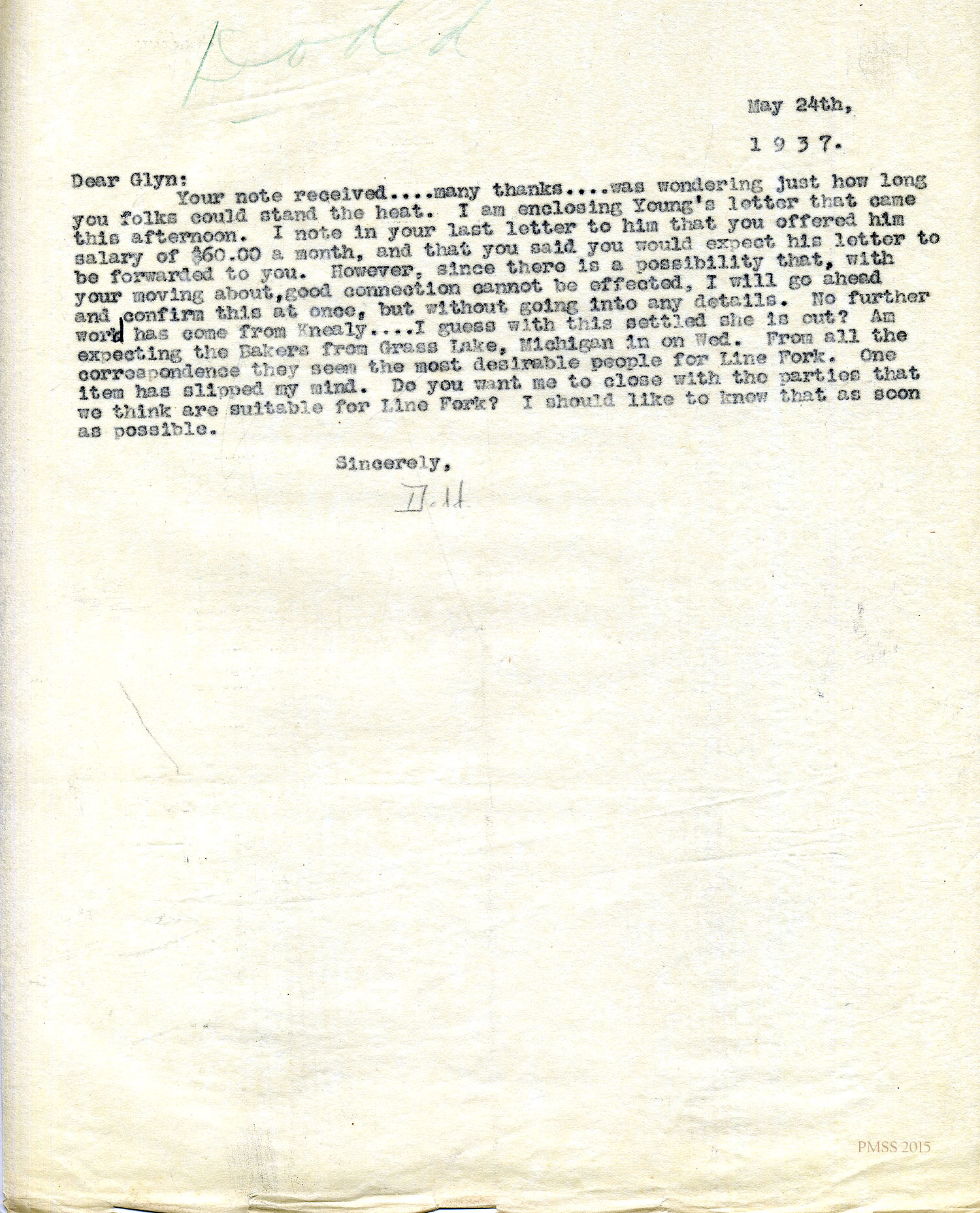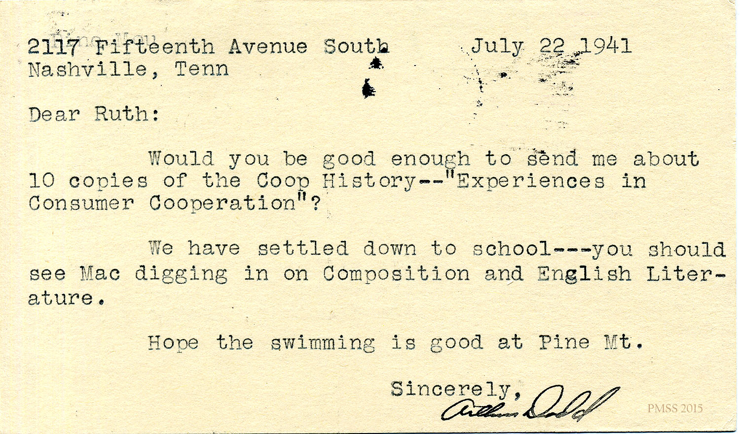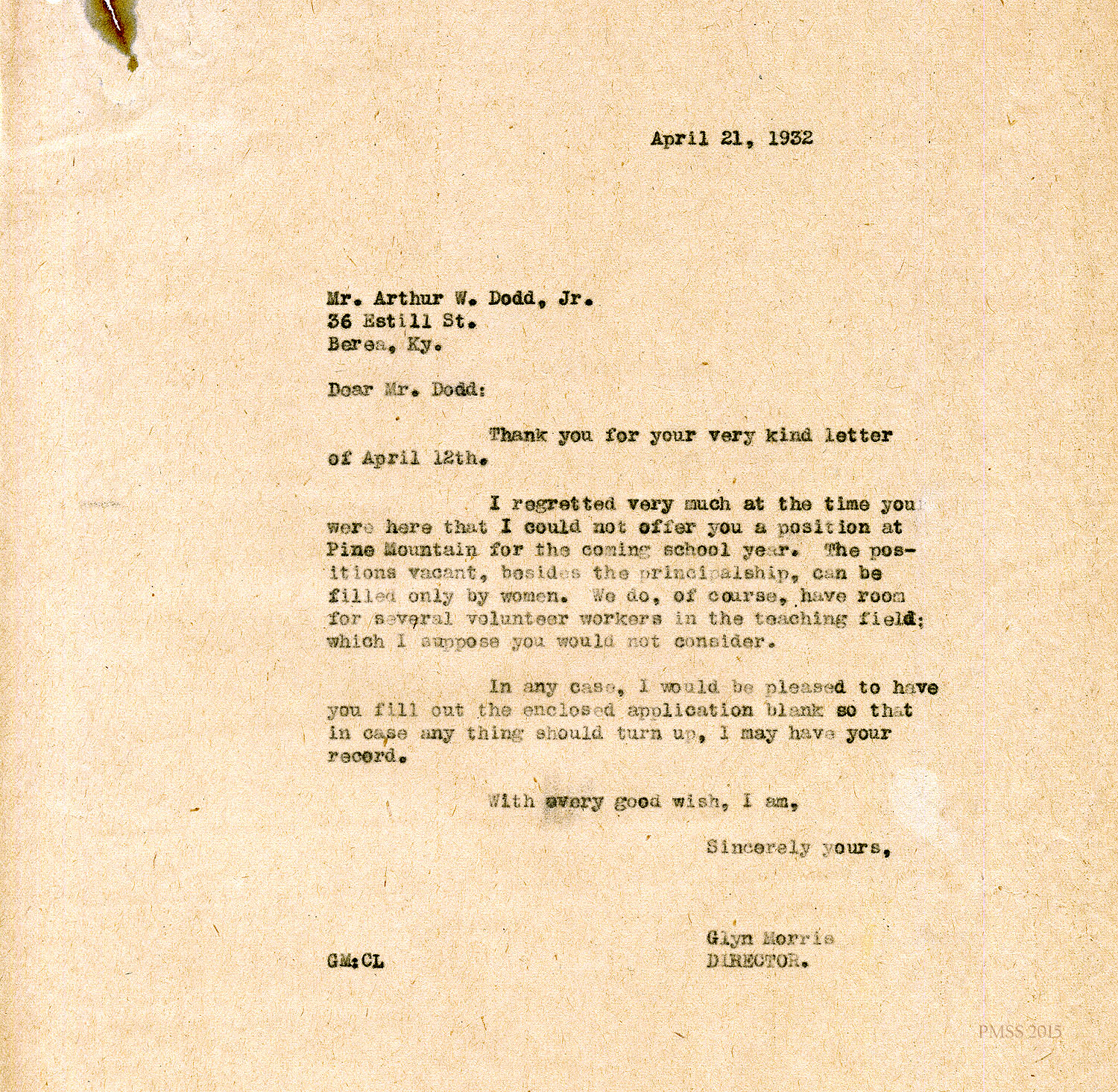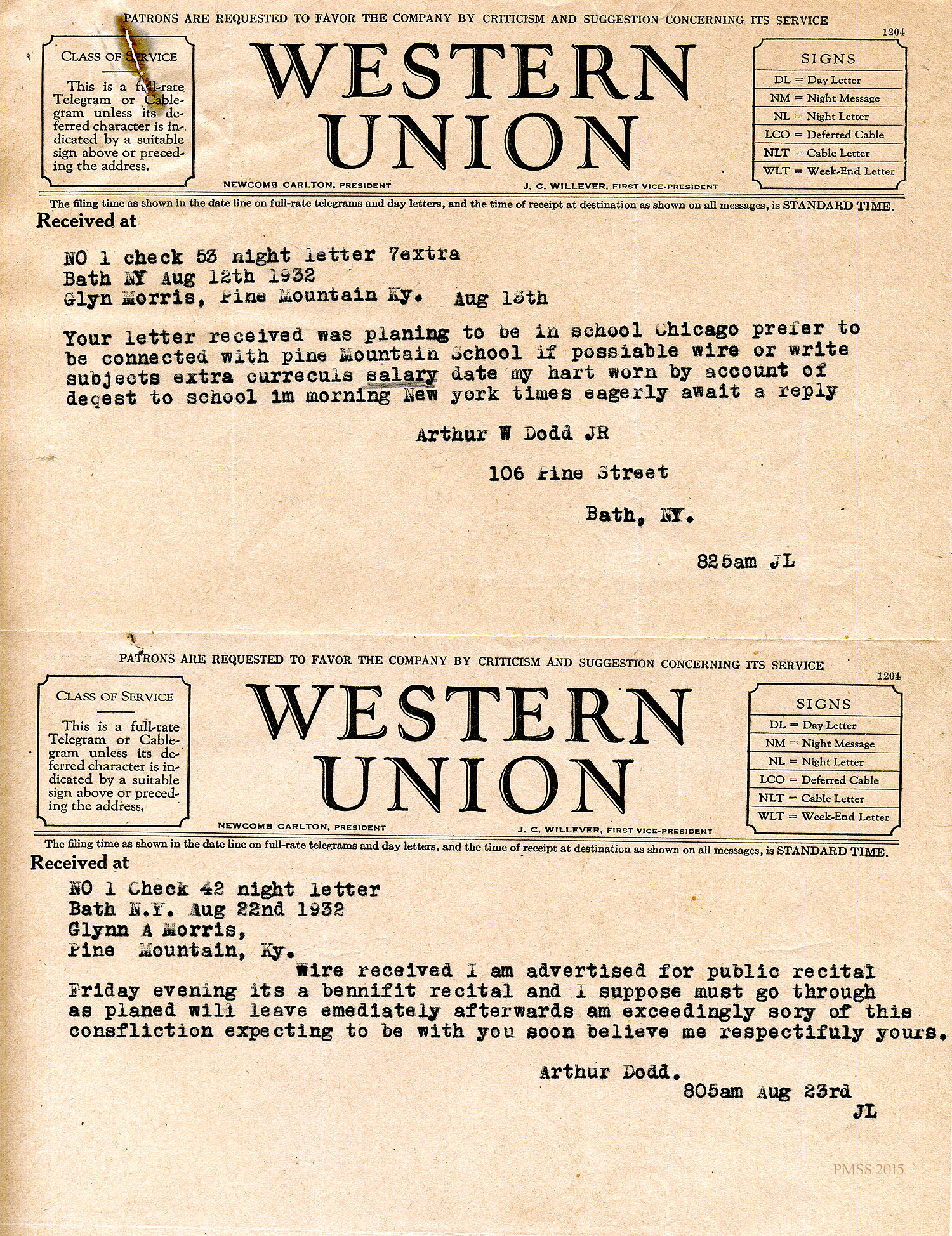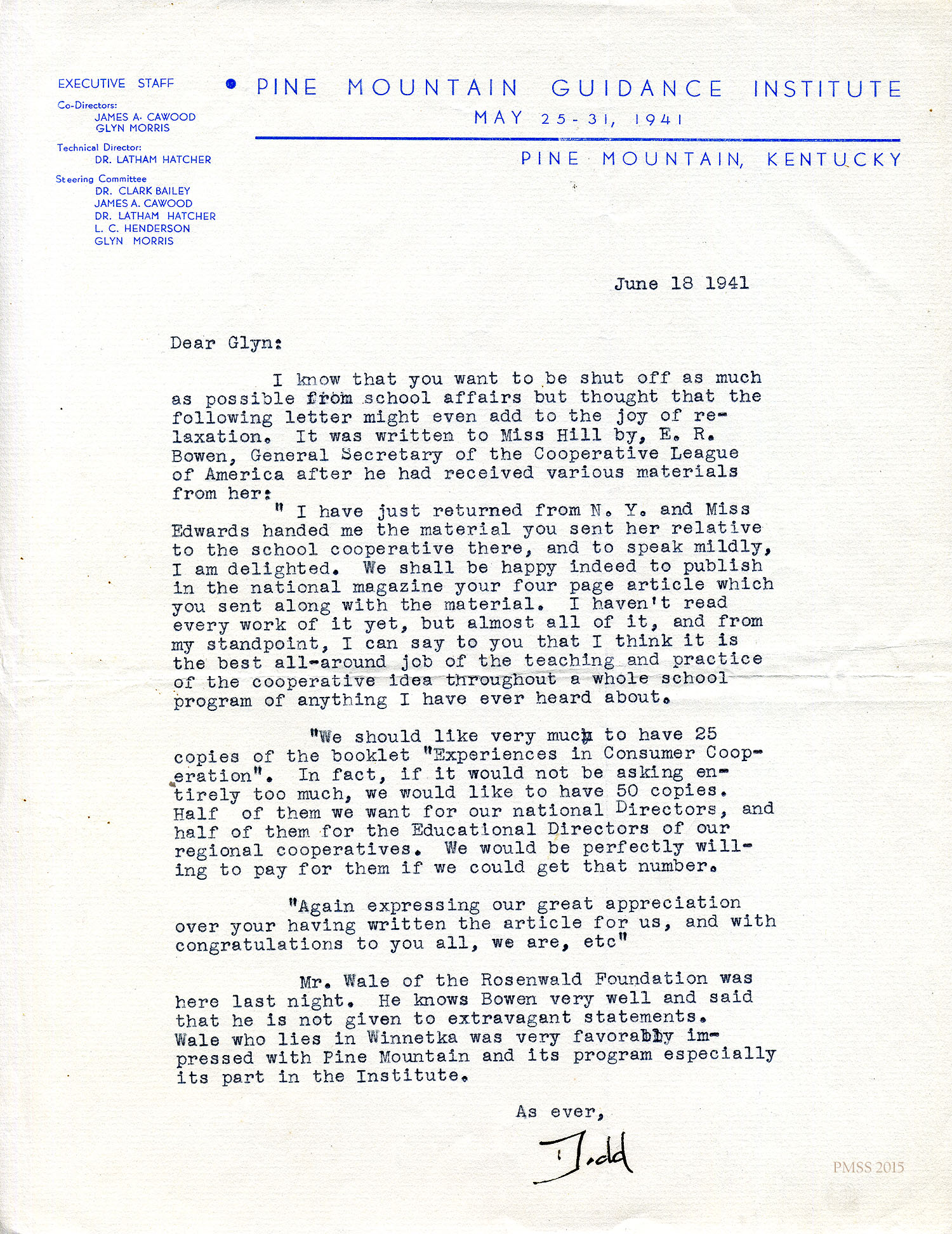 Glyn Morris to Mr. and Mrs. Dodd – PMSS contract for 1942-1943.[045] Oct 30, 1941