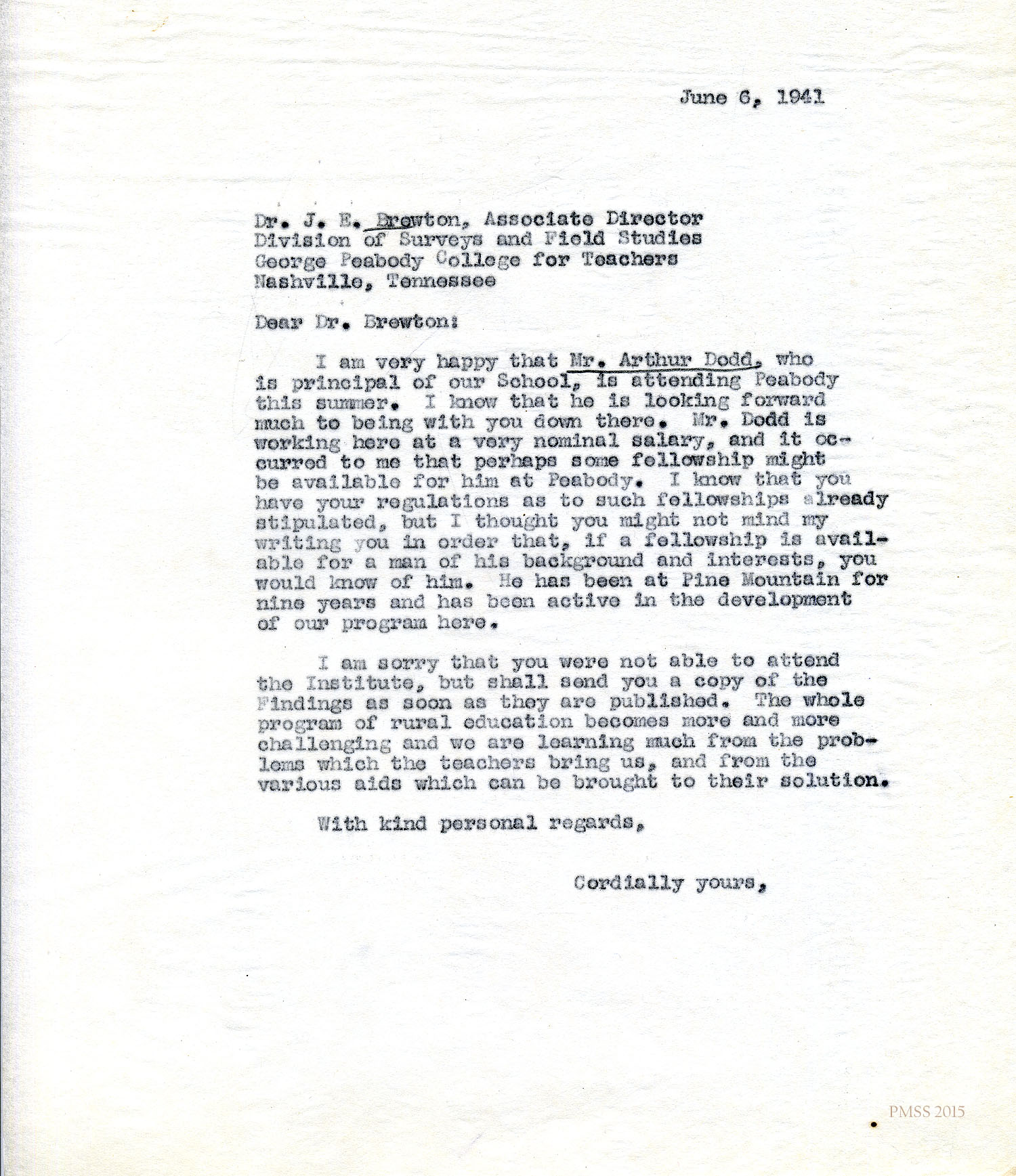 ARTHUR W. DODD CORRESPONDENCE: ADMINISTRATIVE – August 12, 1932, to March 17, 1963