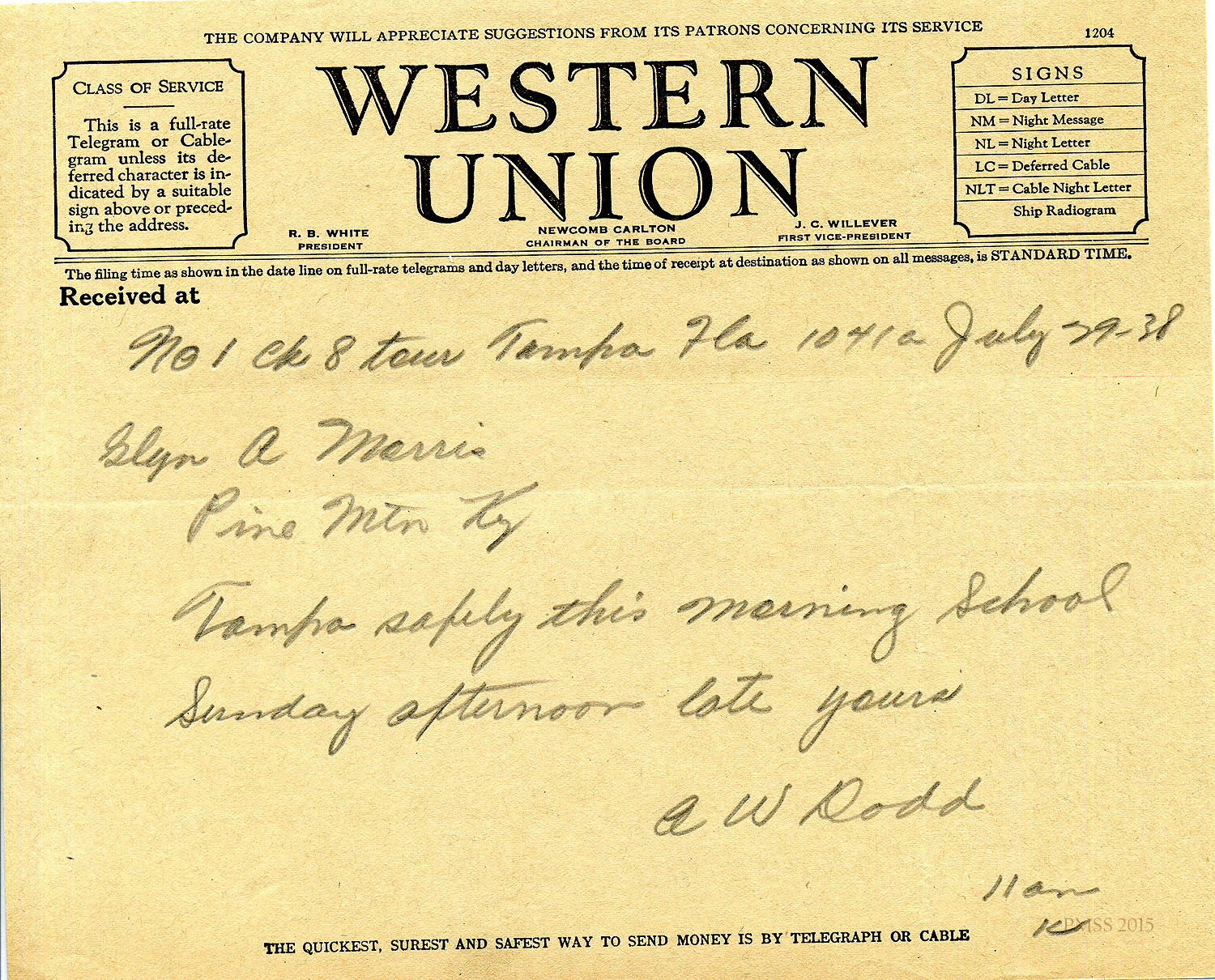 August 12, 1943: Dodd to Ayers via Western Union: “Advise taking Lumberman’s opening…”