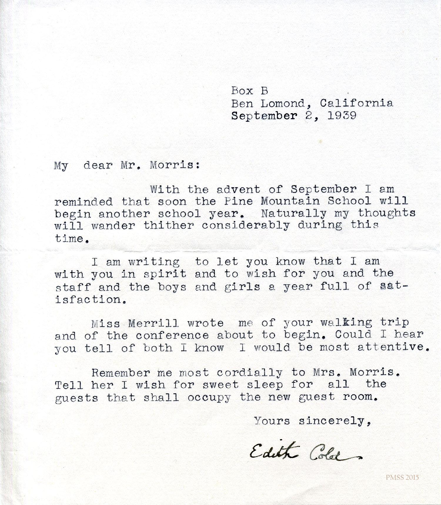I appreciated hearing from you and having a copy of your conference program. Since the receipt of your letter, I have had some communications from the Pine Mountain students. All seem so enthusiastic about the start for this year.