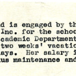 Miss Edith Cold is engaged by the Pine Mountain Settlement School, inc. for the school year 1941-42 as teacher in the Academic Department and Librarian. She is entitled to two weeks’ vacation with pay for the Christmas holidays. Her salary is $75.00 per month for nine months, plus maintenance and laundry.
