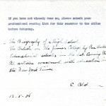 [Typewritten] If you have not already done so, please submit your professional reading list for this semester to the office before Saturday.