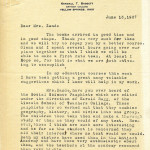June 16, 1927. Kendall T. Bassett, Antioch College, Yellow Springs, OH to Mrs. Zande. Received text books from her; recommends Social Science pamphlets edited by Harold Rugg, Lincoln School of Teachers College. [003]