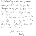 July 16, 2000. Beth Bassett Dal Negro, Canton, CT, to Ms. (Robin) Lambert [PMSS Director, 1997-2001]. Describes her father and mother’s connection and continued interest in PMSS; father was close to Helen de Long; plans to visit PMSS in September 2000; encloses old postcard; offers to donate photographs. [007]