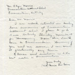 n.d. Handwritten note [by Morris?] with “The Office” letterhead. “Talked to Miss Gaines – July 12th – approximately – for one month or 4 wks @$ [?] – …Miss G. would be housemother. [017]