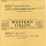 November 18, 1937. Western Union Telegram from Annie Lee Goins, Morganton, NC, to Glyn Morris. Interested in teaching home economics; asks for details; will be in Berea at Thanksgiving.