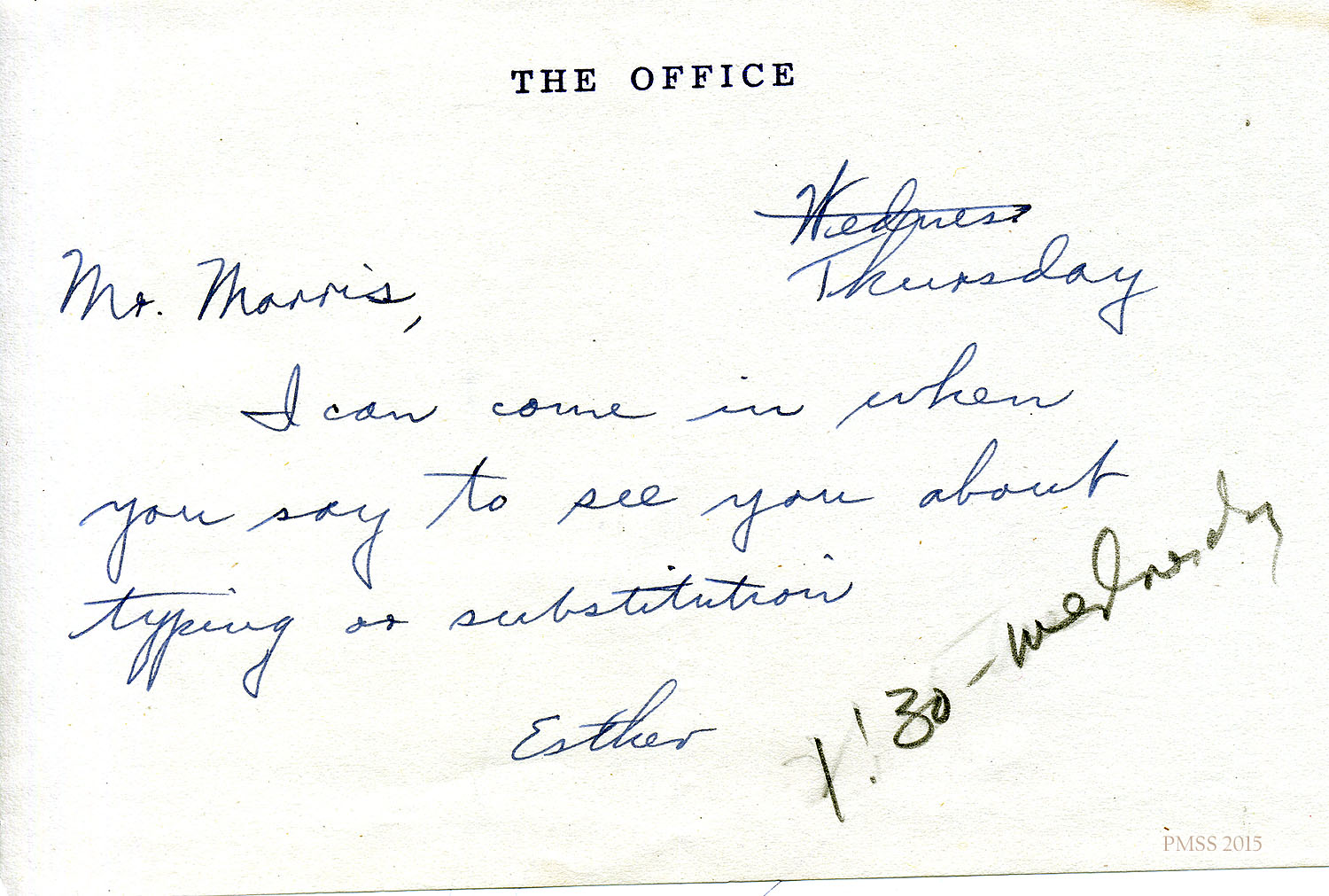 [NOTE: Images of correspondence from the PMSS Office are of unsigned carbon copies of typewritten letters. The original typed letters were signed and sent to the addressee. Non-PMSS letters are either handwritten as indicated or are typewritten originals.]