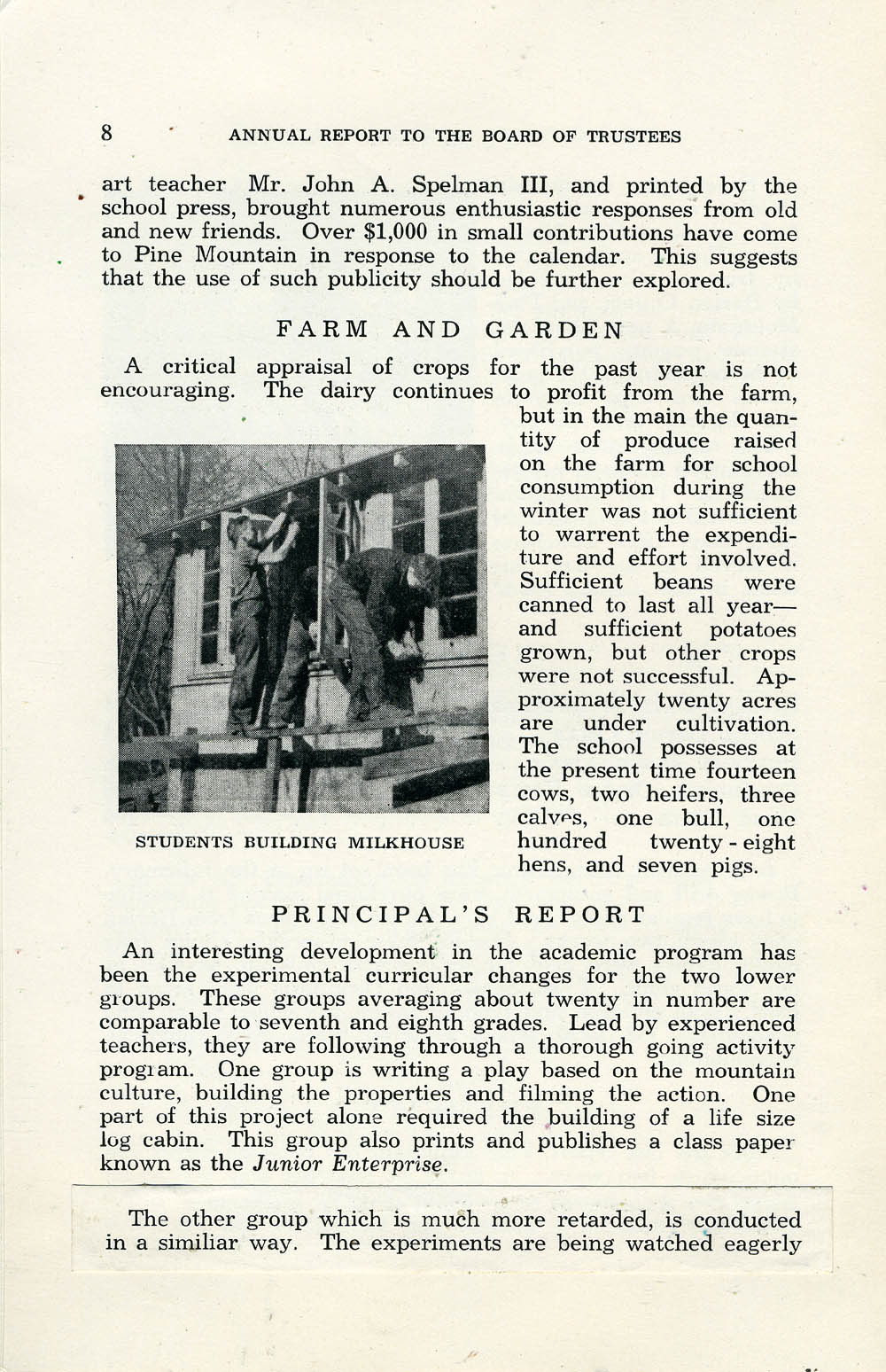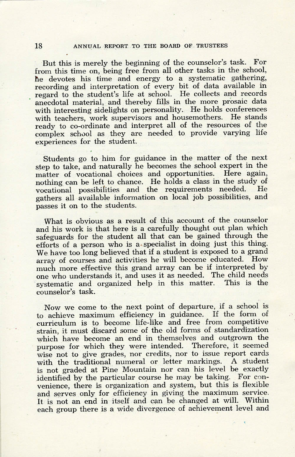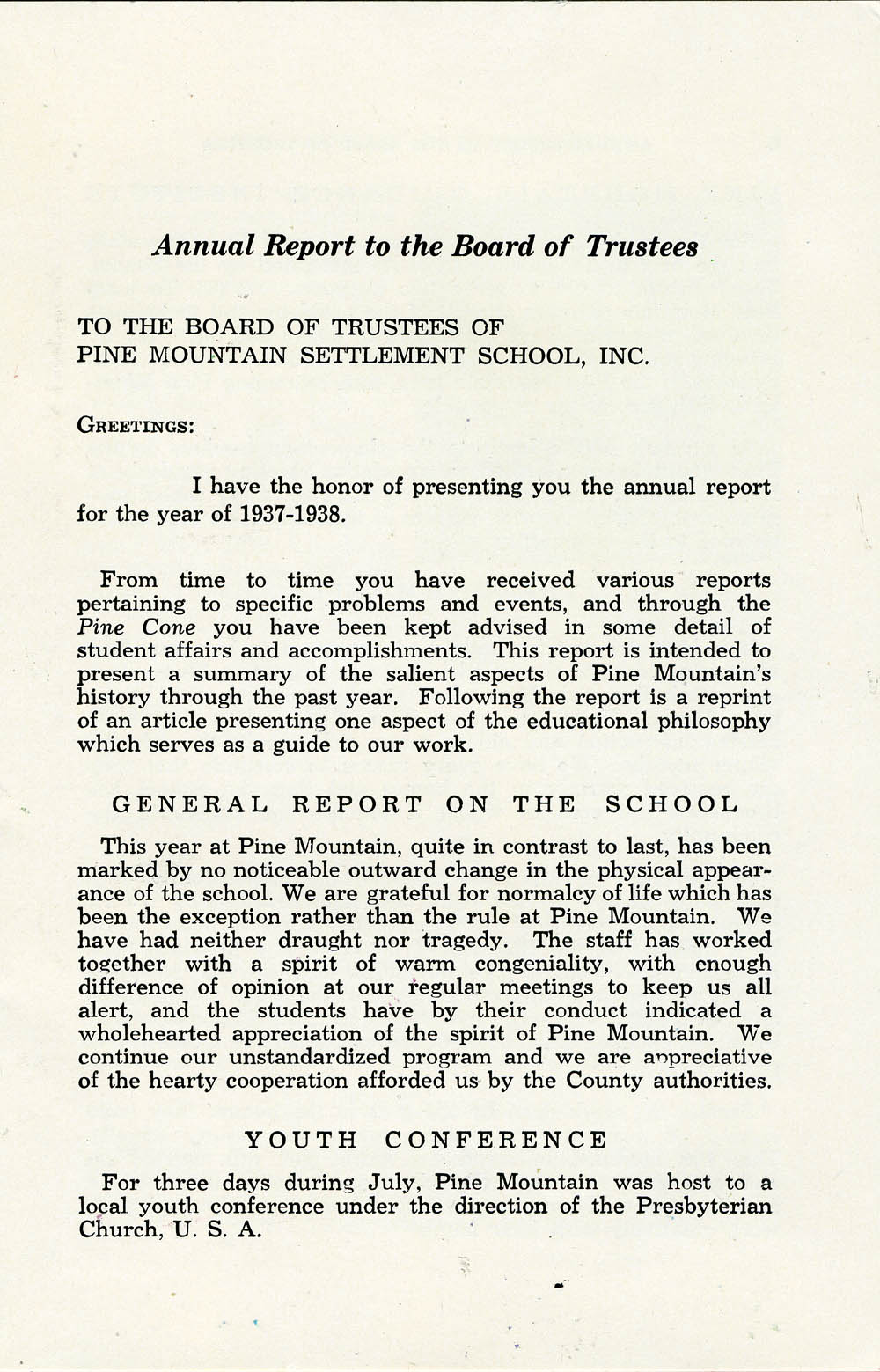1937 – 1938 REPORT TO BOARD OF TRUSTEES