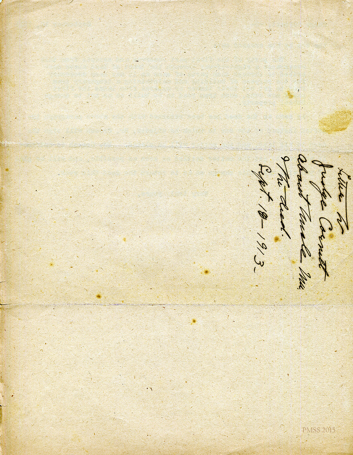 Handwritten note on reverse side of September 17, 1913, letter; “To Judy[?] & Cornett about deed Sept 17.” [001]