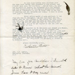 Handwritten notation in margin, first page: “Please excuse the nibs [ink smears?].” Notation, second page: “My love for Buddie. I would like to know what he and Jim have to say now.” [004-005]