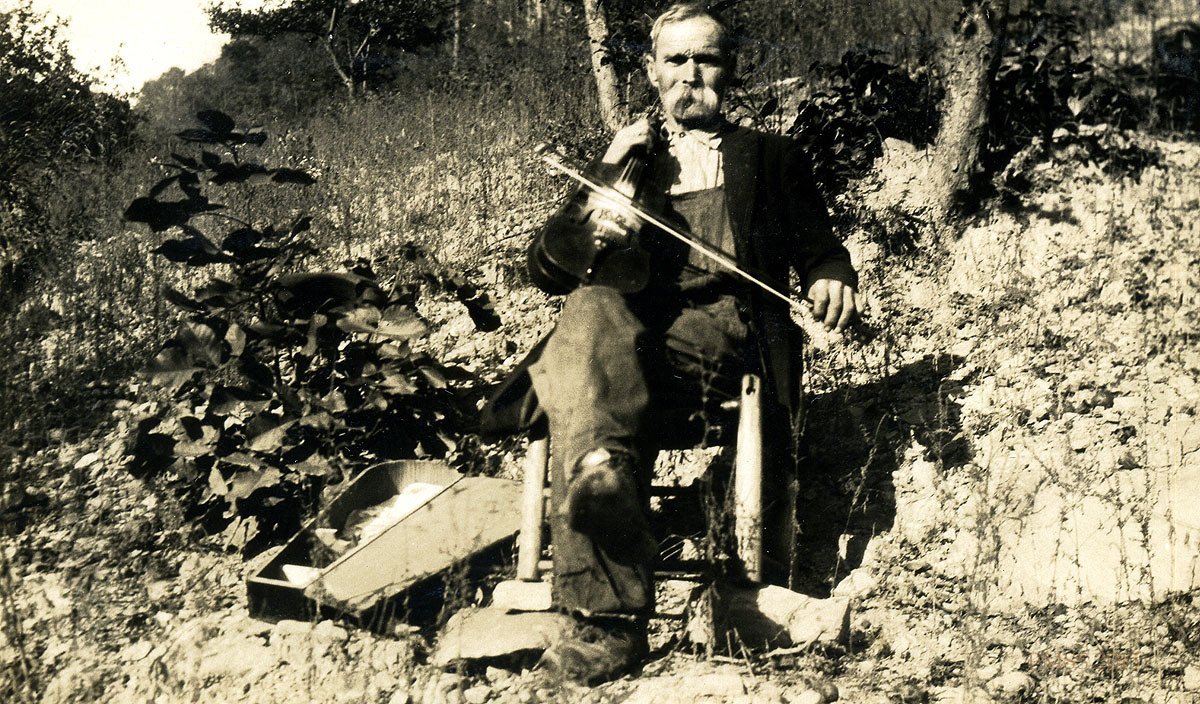 - “‘Fiddler’ John” with his donated violin. [kingman_017c]