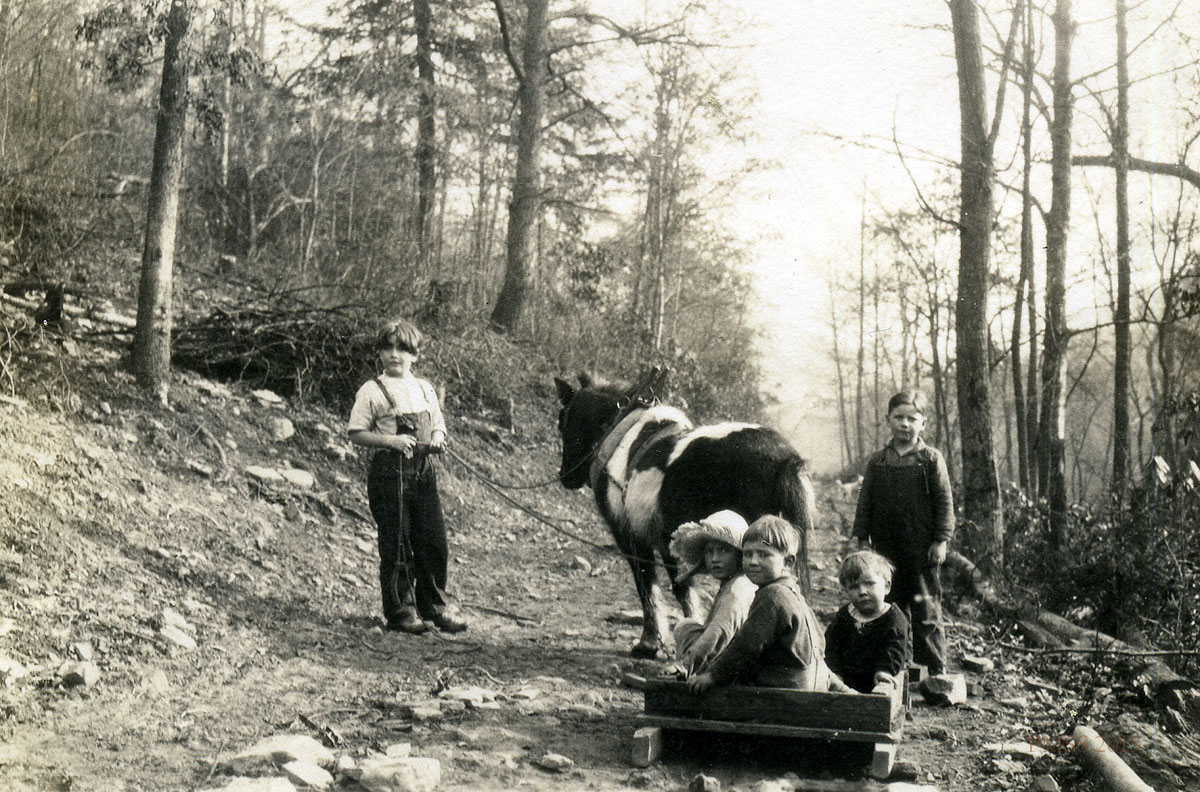 - “?’ Children with small pony. [kingman_065a]