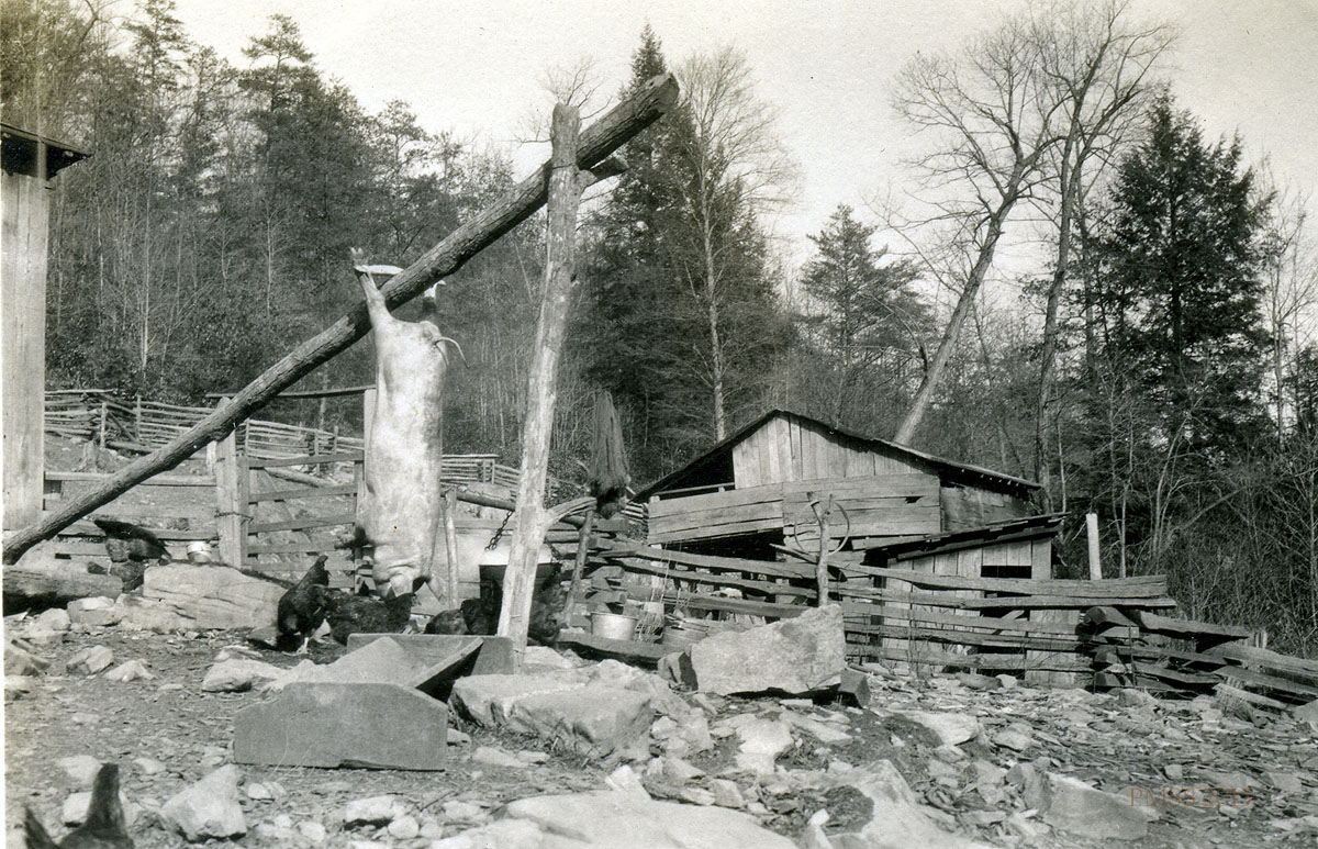 - “Pig roast.” Butchering a pig. [kingman_070a]