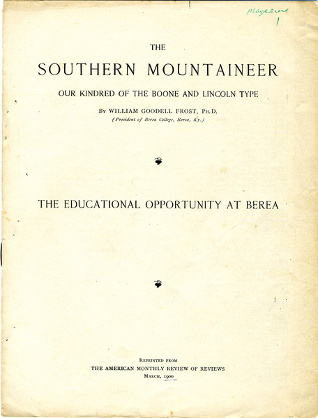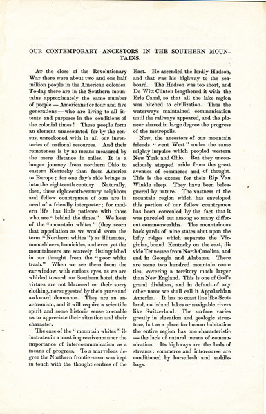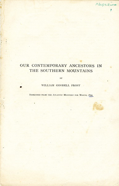 GALLERY: SCRAPBOOK BEFORE 1929: William Goodell Frost – “Our Contemporary Ancestors in the Southern Mountains”