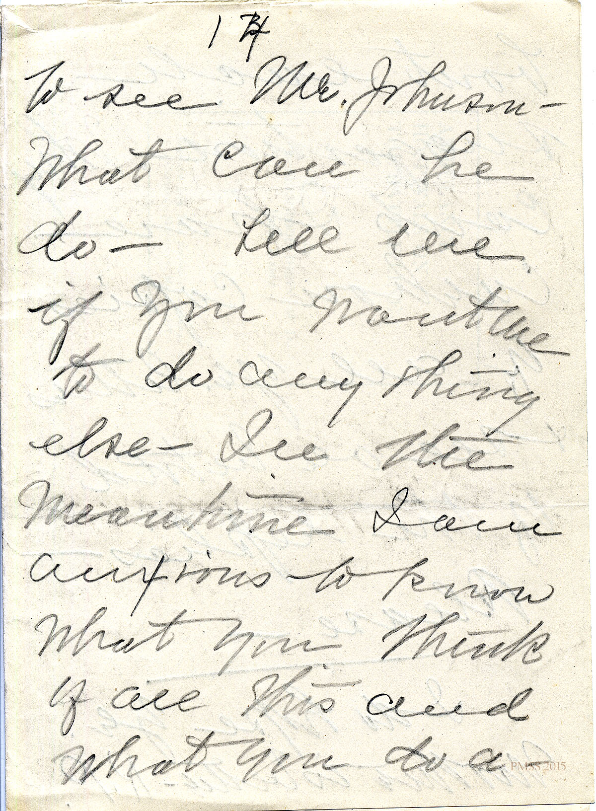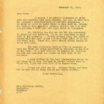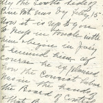November 21, 1919. EZ (Ethel de Long Zande) to “Kate” (Katherine Pettit), Lexington, KY [1 page, unsigned]. Advises waiting for Mr. Johnson’s response; names Mr. Phillips as the surveyor; the State pays half of the road-building and P.M. pays other half; has sent letter to Road Commissioner. [055]