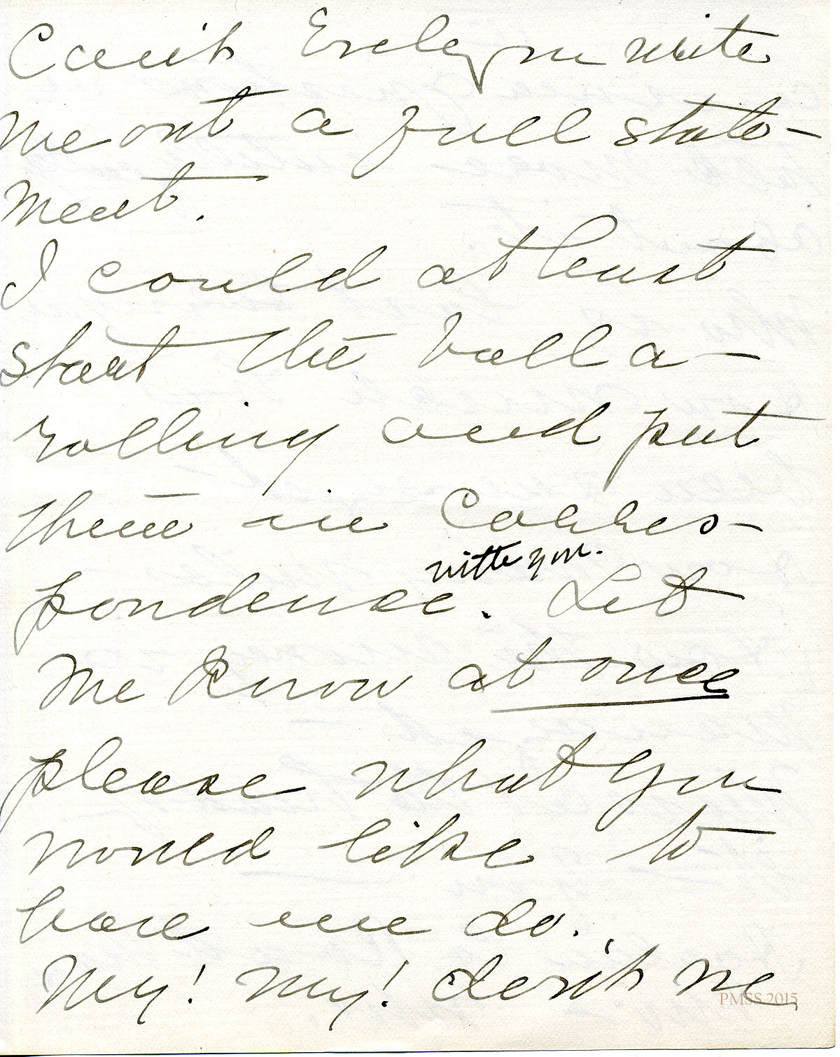 November 24, 1919. EZ (Ethel de Long Zande) to “Kate” (Katherine Pettit), Lexington, KY [1 half-page, unsigned]. Encloses copy of letter to Mr. Martin about electric lights; advises getting at least Laurel House lighted before Christmas. [056]