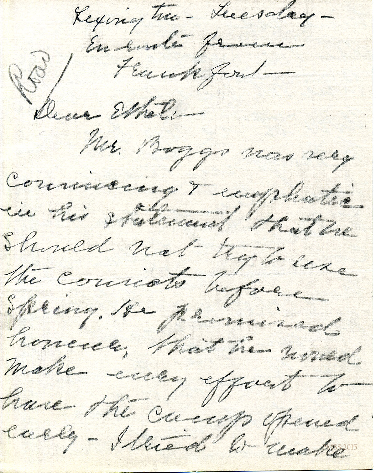April 17, 1919. KP to Mr. C. G. Smith, Partridge, KY [1 half-page, unsigned]. Thanks Mr. Smith for arranging Mr. Jenkins to guide the hiking group. [009]