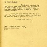 *October 16, 1919. Katherine Pettit to Min [Mrs. Waller Bullock] Here is a letter from Mary Stacy. I wonder if you, through your Garden Club, can get her some of the seed she wants. I cannot remember just what the vine was — some sort of flowering bean vine. It was all of twenty years ago that I gave her those.| Do you know that you can go right to Mary Stacy’s now on the train? Why don’t you go up to see her? You know how comfortable you can be there.