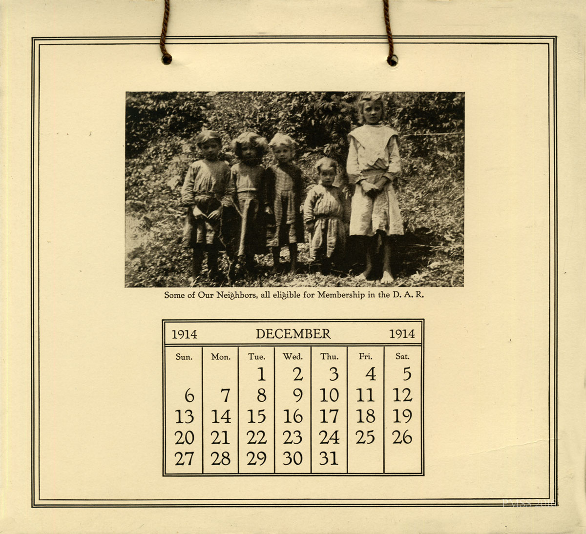 - 1914 Calendar. Image – December