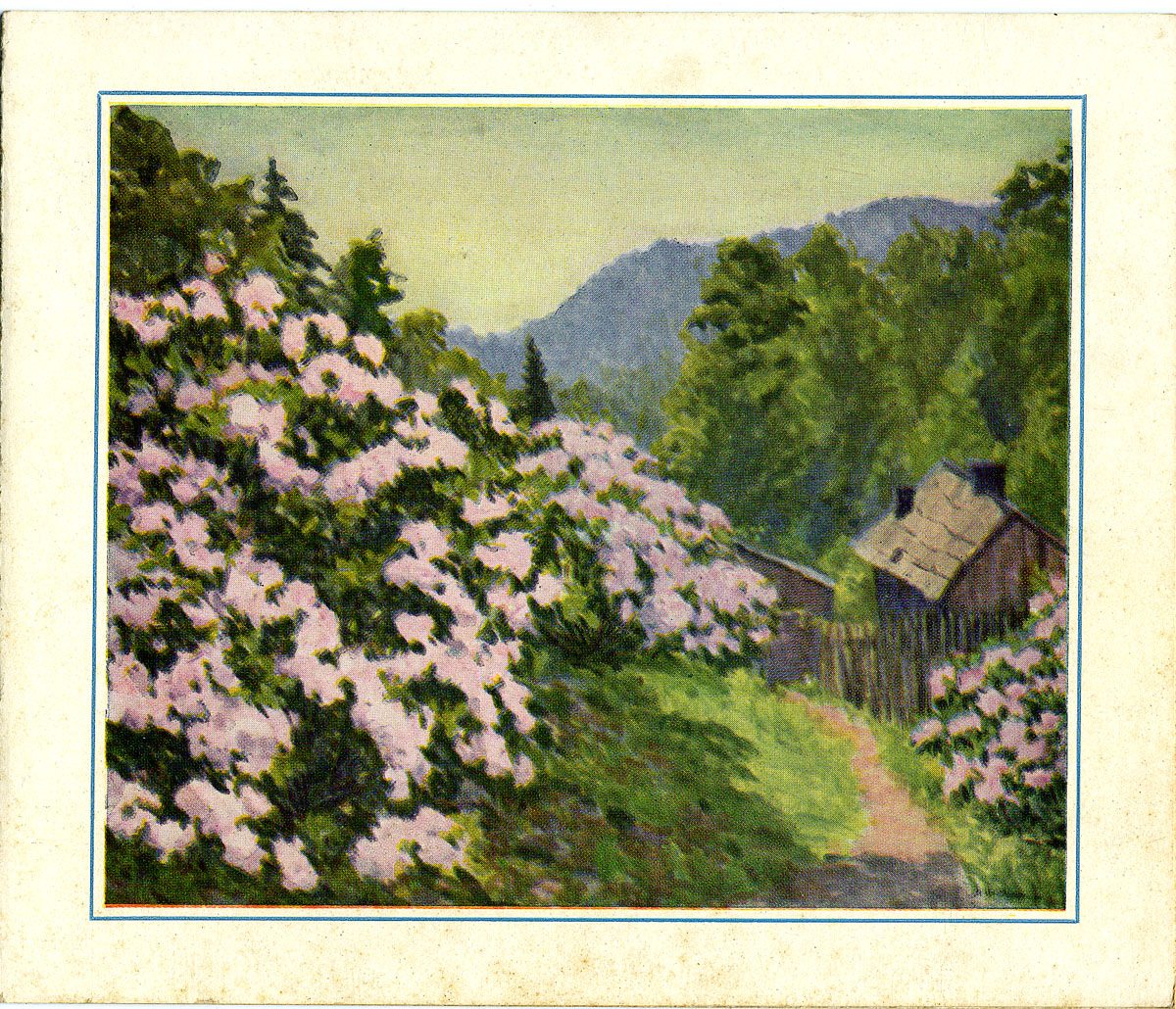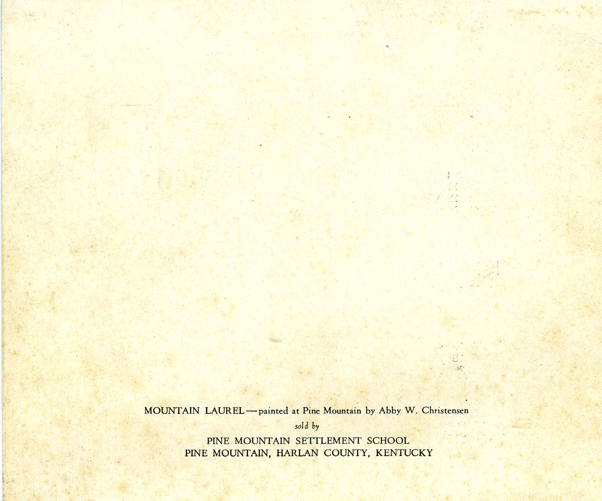 The 1955 PMSS Calendar returns to an earlier calendar created in 1947 by Abbie Winch Christensen. The small painting by Christensen, who was a worker at the School during the boarding school years, captures the Spring bloom of mountain laurel and the iconic mountain cabin and path. It is a compelling image and it is not remarkable to see it return to illustrate another calendar from the School.
