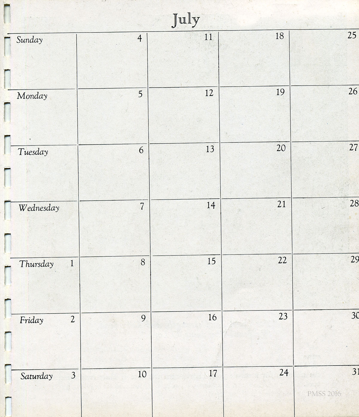 - 1943 Calendar. July 19