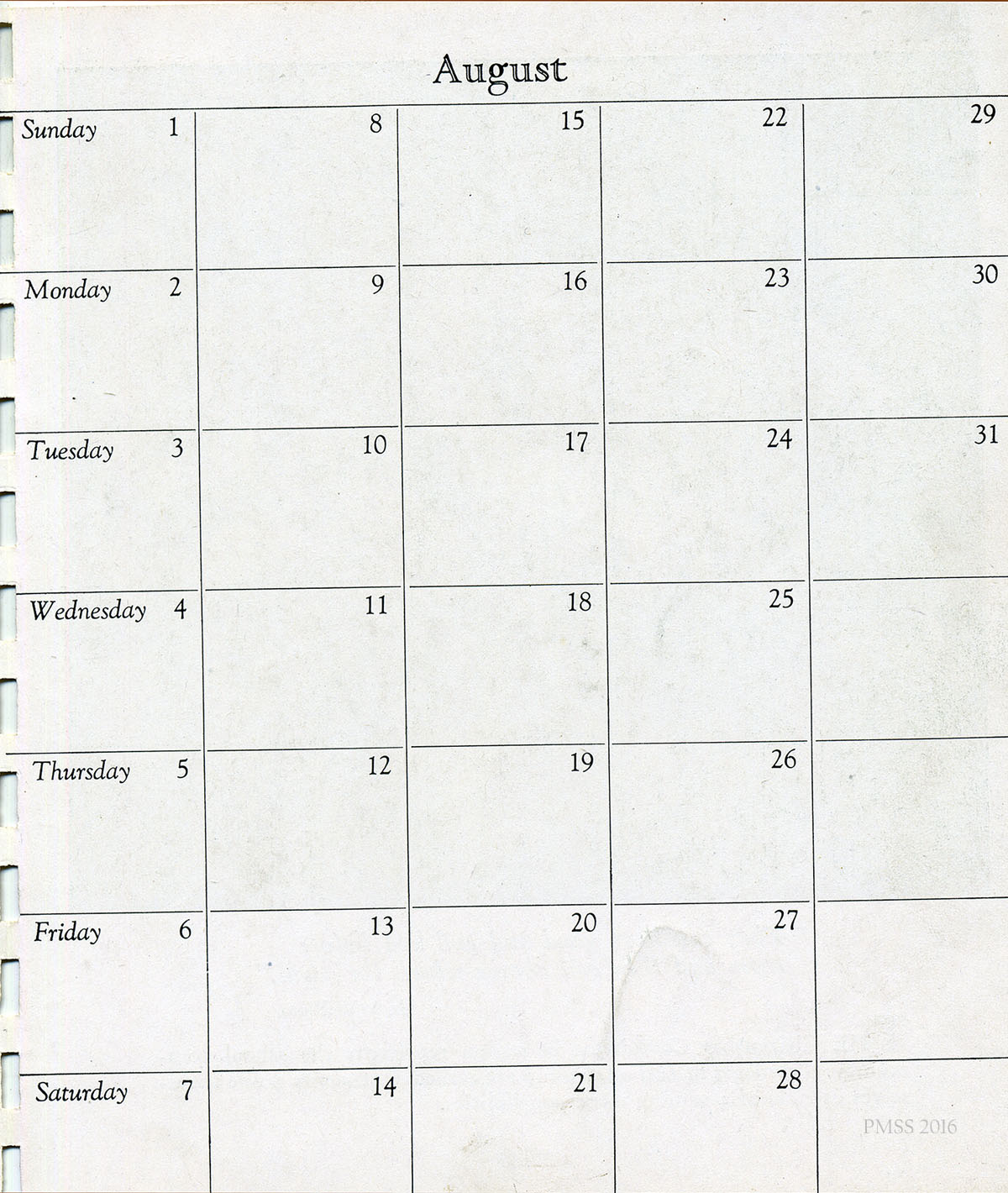 - 1943 Calendar. August 21