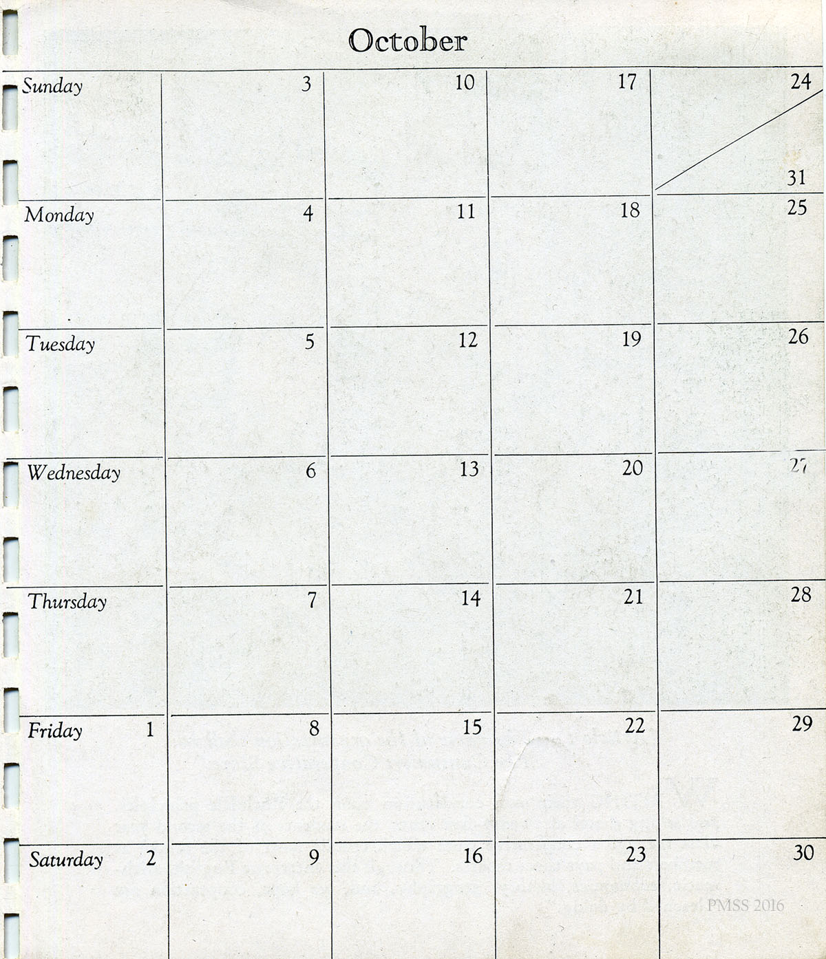 - 1943 Calendar. October 25