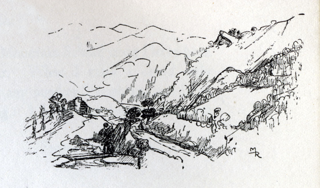 - 1945 Calendar. Drawing by Mary Rogers. May. Think of the thousands of miles of mountains ….”