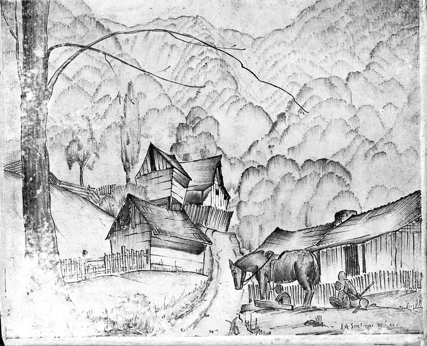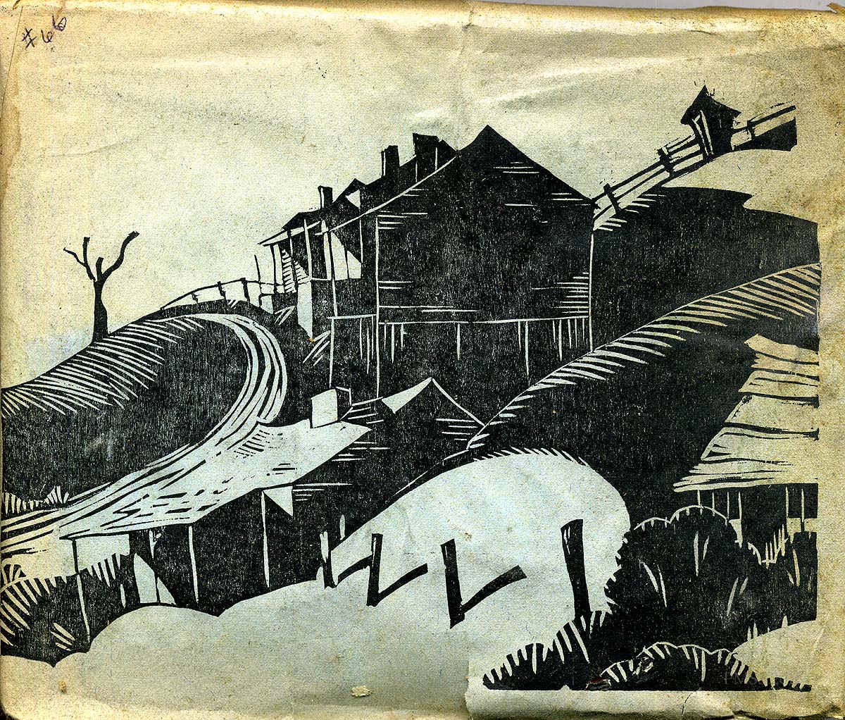 Imprints were made of John A. Spelman III linoleum and wood blocks in c. 1963. The blocks were then wrapped in newsprint and the block impressions attached to the wrapped blocks. This list represents the impressions of blocks located in the Pine Mountain Settlement School Collections for John Spelman III and includes work from approximately 1938 to 1947. The represented proofs were on the block wrappers represent calendars, school brochures, student Conifer Literary covers, etc.. Some drawings by Spelman III are included as these were transferred to metal plates for later printing and were found with the newspaper wrappings for the metal plates. A small body of Spelman’s work is not represented in this series; for example, the blocks used to illustrate his book At Home In the Hills (1939), first edition and his large blocks created for The Kentucky by Kentucky author, Thomas D. Clark. The Kentucky (1941, reprinted 1992) was one of the books in the Rivers of America series.