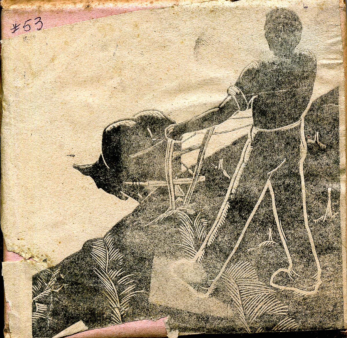 - 19 019 John Spelman Man with Plow and Mule linoleum block proof 2 4.25″ x 4″ (Calendar)spel_blocks_053