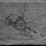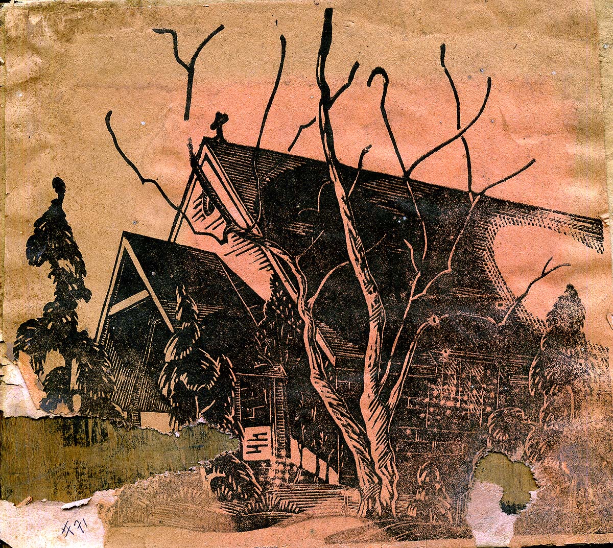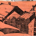 - 1 001 John Spelman Chapel drawing linoleum block print proof 1 5″ x 3″ spel_blocks_070