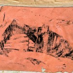 - 43 043 John Spelman Woman Hoeing on Hillside linoleum block proof 2 4″ x 4″ spel_blocks_051