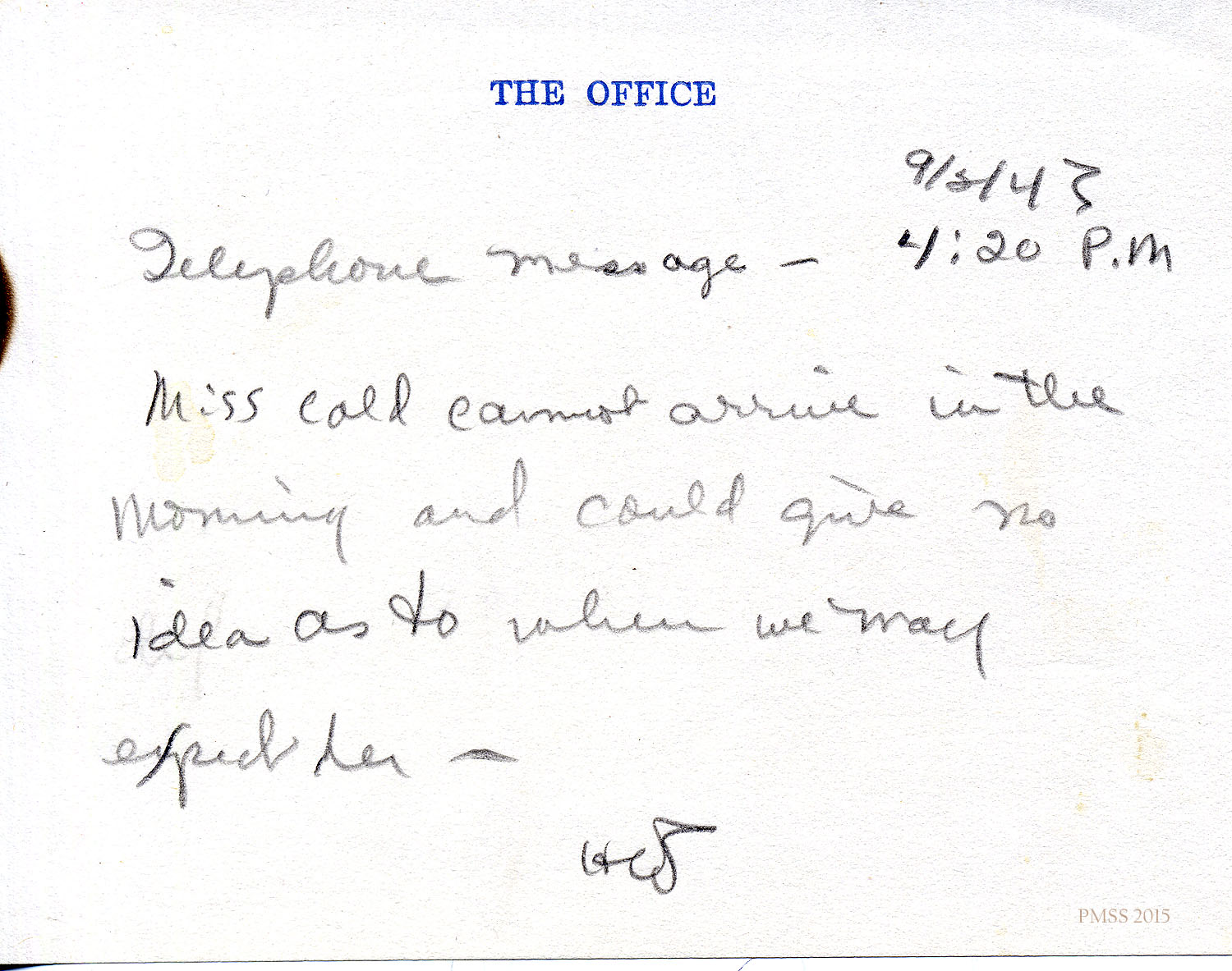 Telephone message – 9/2/43 4:20 P.M.