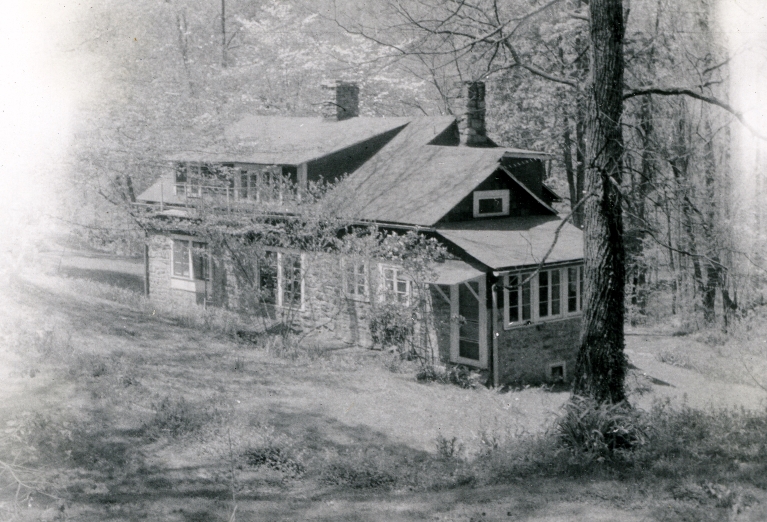 Zande House was a favorite gathering location for the staff at the School. It became the annual site of the Dogwood Breakfast, a celebration of spring and a time when all staff workers at the School gathered on the west terrace of the building to enjoy a waffle breakfast. The long view westward, down the long valley which stretches out below the terrace, was framed in dogwood in early Spring, hence the “Dogwood Breakfast.” Evidence in the School record suggests that the annual Dogwood Breakfast was started by Angela Melville who briefly served as Director of the School following the death of Ethel de Long in 1928. Melville invited all the staff to “…come see my dogwoods.” The hillside surrounding Zande House was noted for its large number of native dogwood trees. The native tree is now difficult to find on the campus for a recent dogwood blight has decimated the native species throughout the country.