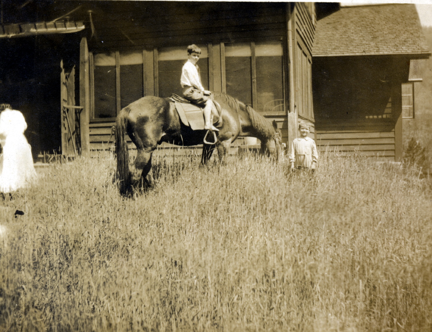 - Zande House. Mrs. Zande’s horse and two young boys. [Berto Zande ? to far rt of image] X_099_workers_2527bb_mod.jpg