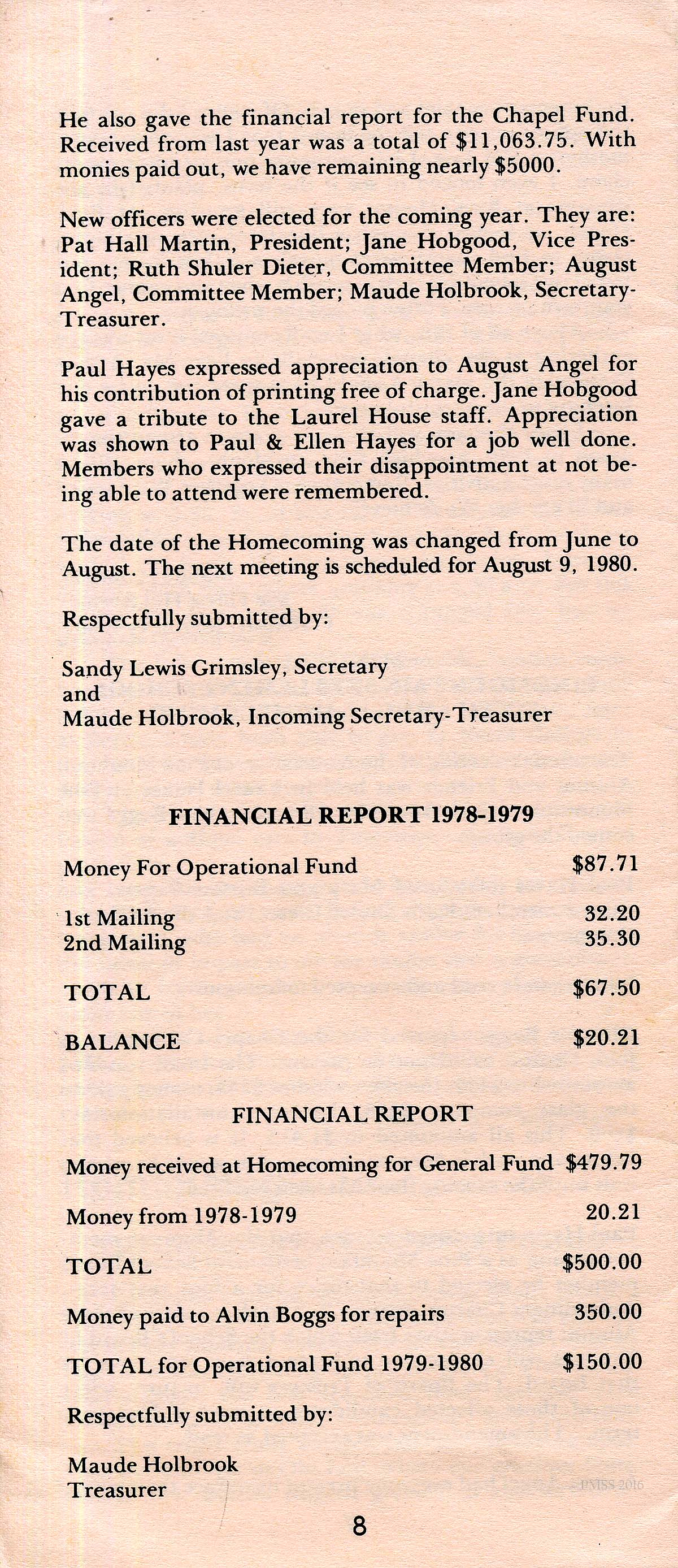 I trust that you will all make plans to attend the reunion in 1980, at which time, no doubt, there will be many more activities. Remember, “Together We Aspire” and “Together We Achieve.”