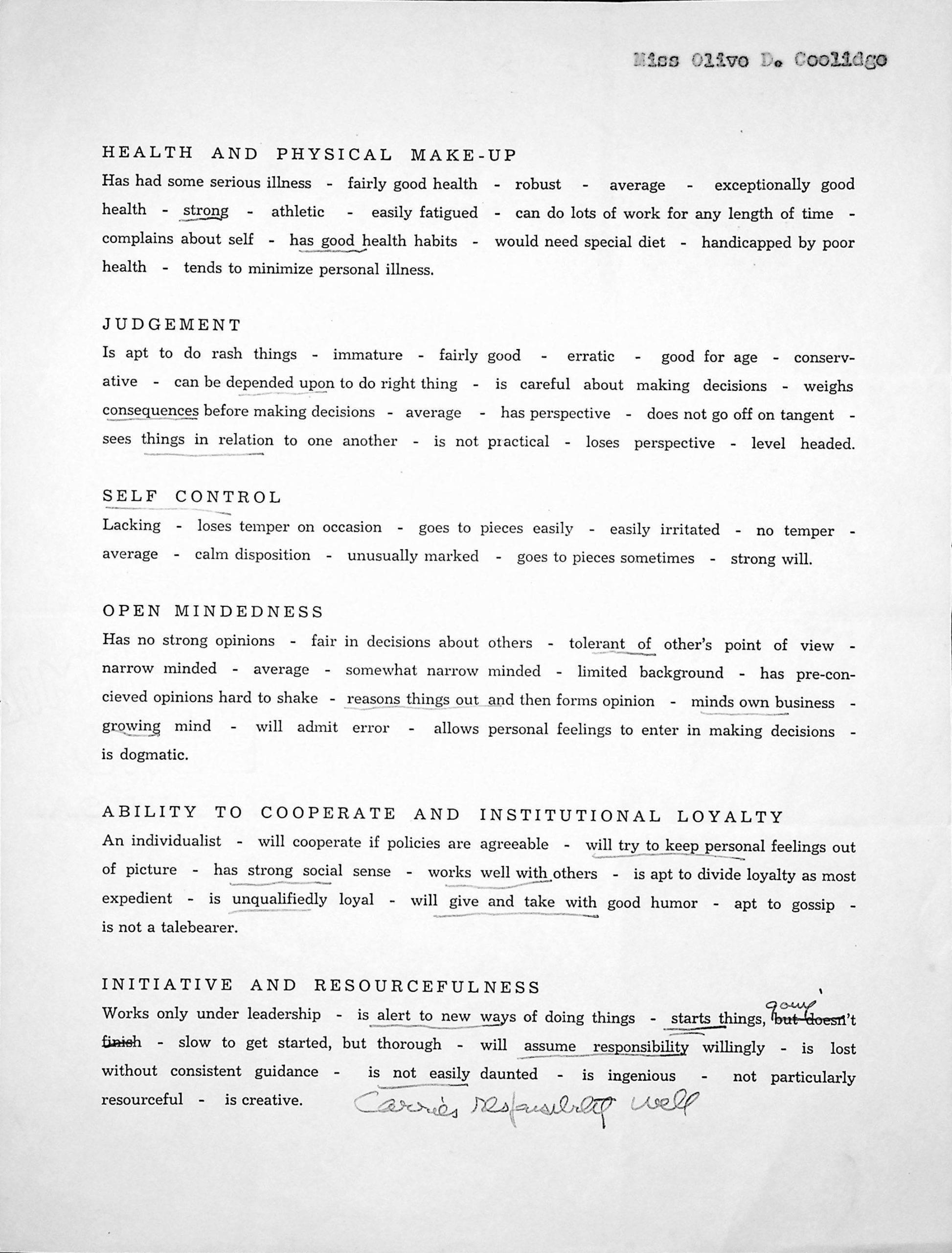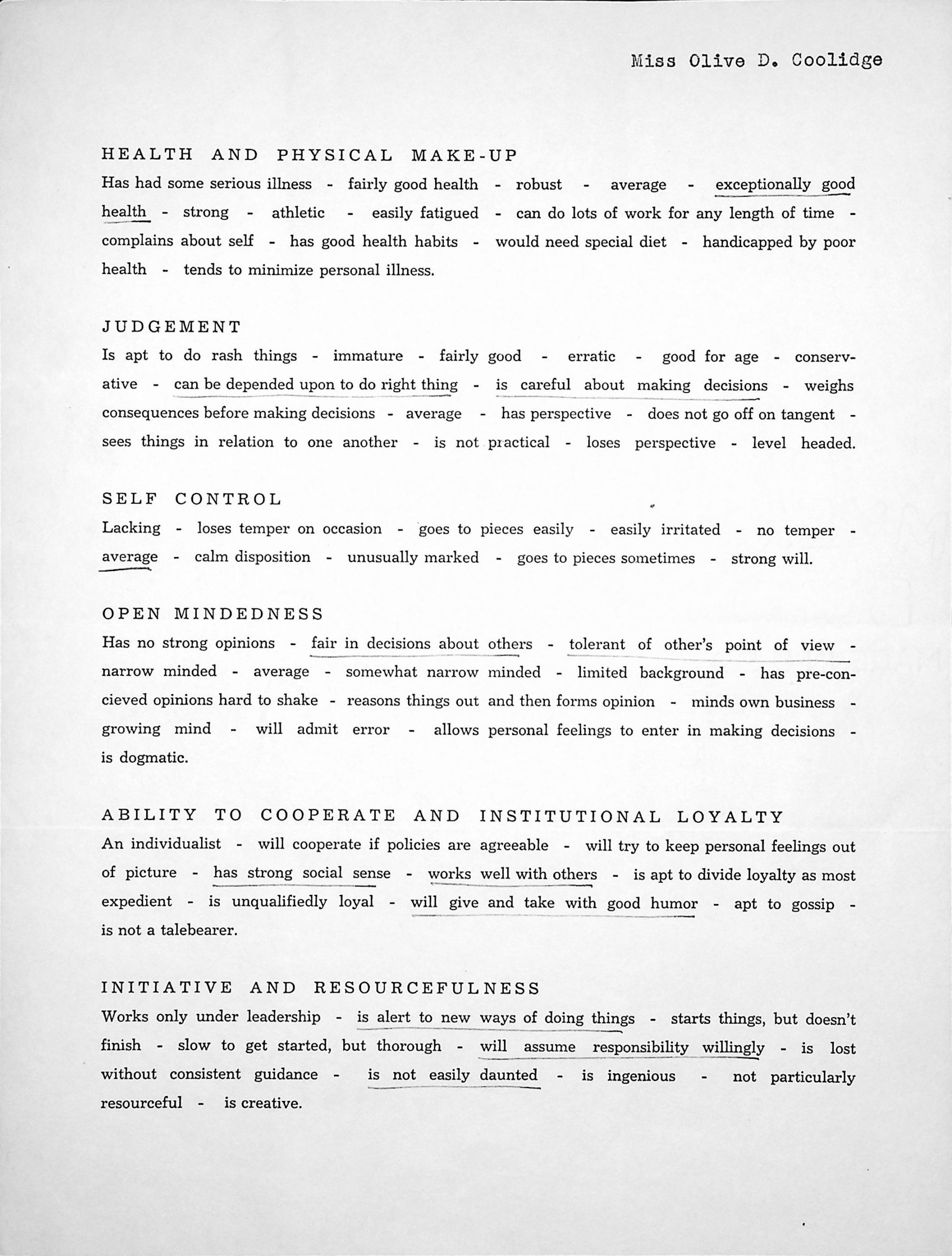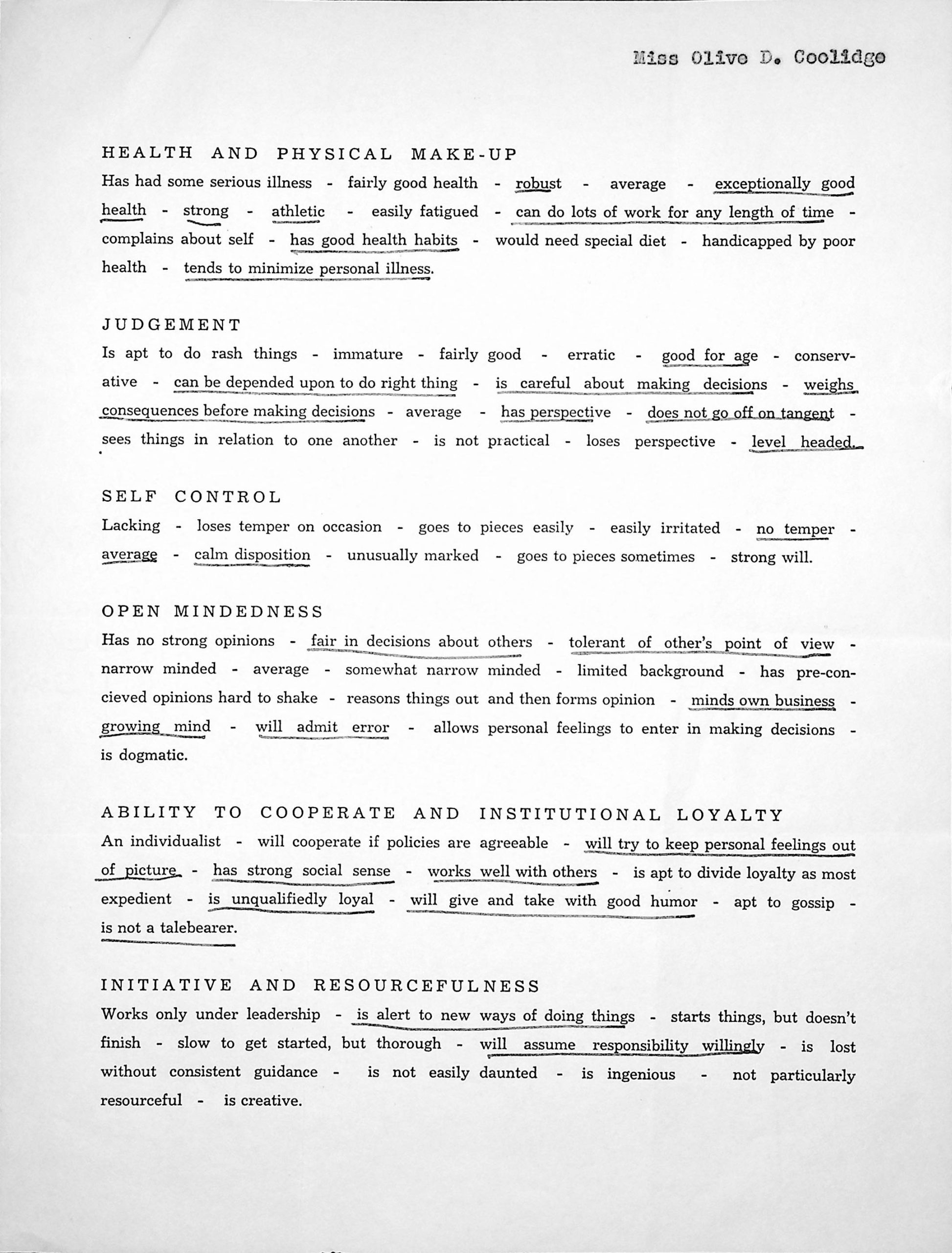 TAGS: Olive Coolidge correspondence 1941-1942; application to work at PMSS; recommendation forms; Glyn Morris; nurse’s assistant; Infirmary; Western Union telegrams; Grace M. Rood