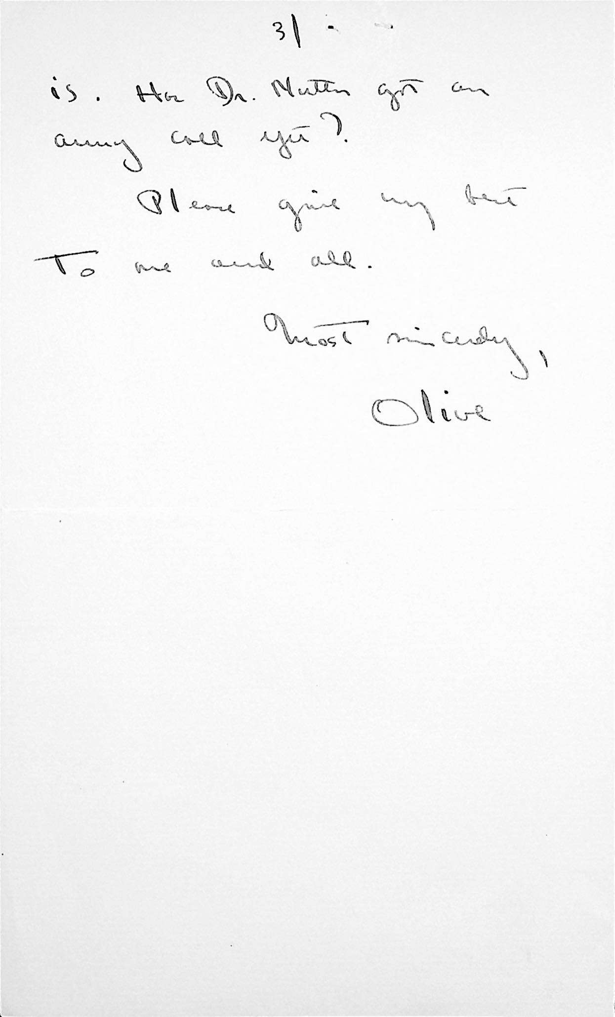 183 [image00183.jpg] Handwritten letter to Morris from “Olive” on PMSS stationery, no date, reporting that she is going to Washington for the weekend.