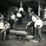 - H.M.S. Pinafore Play. (From left) Elizabeth MItchell, Georgia Ayers Dodd, … (far right) Fern Hall (?). [cobb_alice_068.jpg]