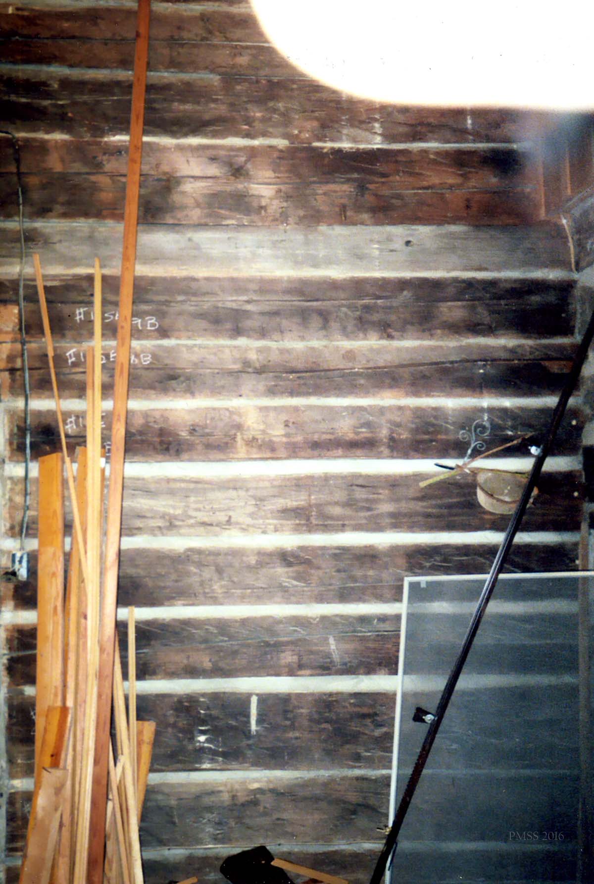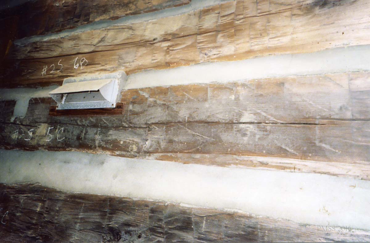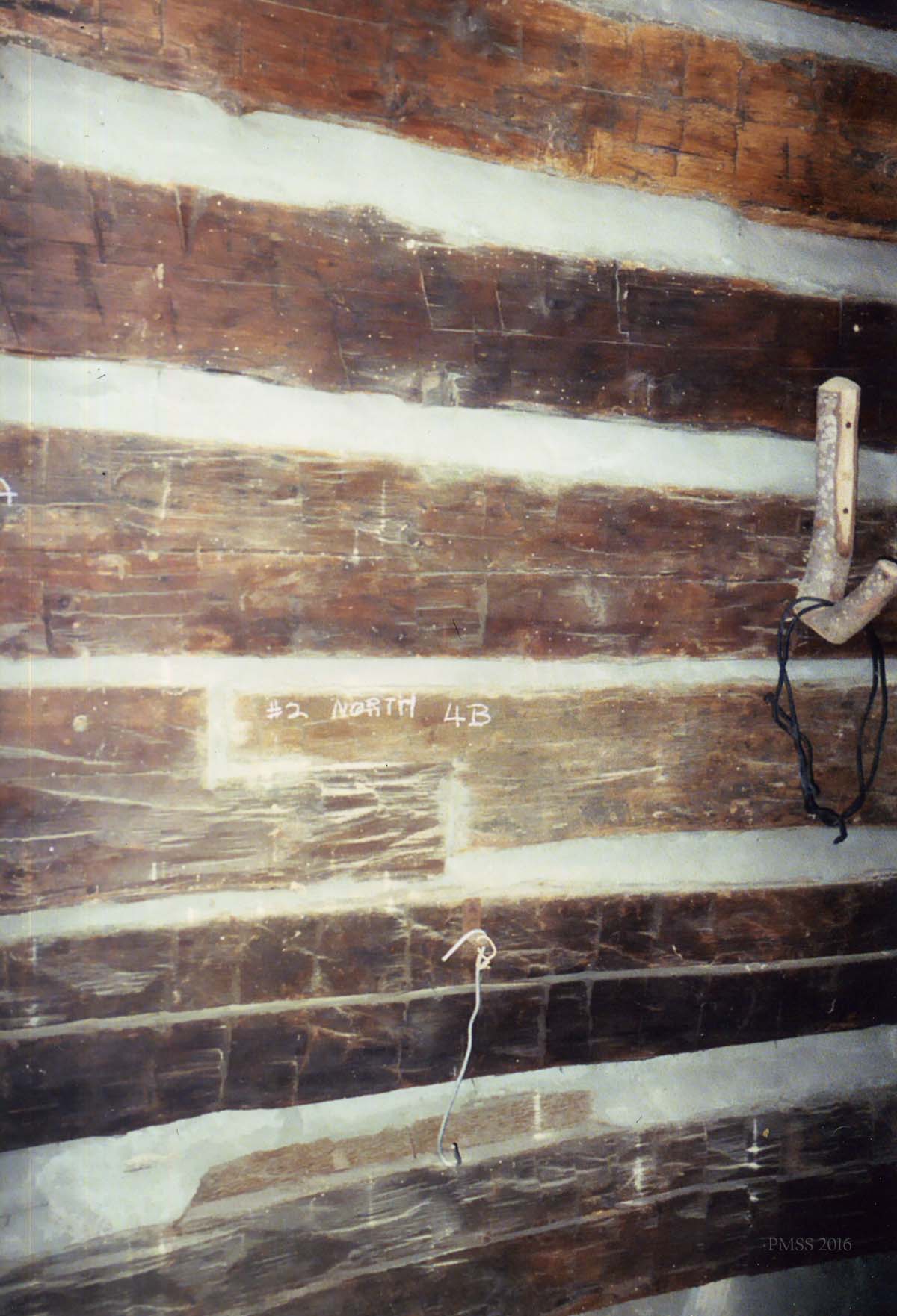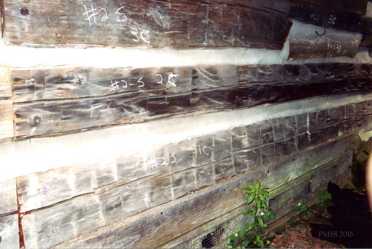 - William Hayes Cabin. Stored in PMSS Barn, c.2008. Patrick Kennedy, consultant, 2013. [IMG_1932.jpg]