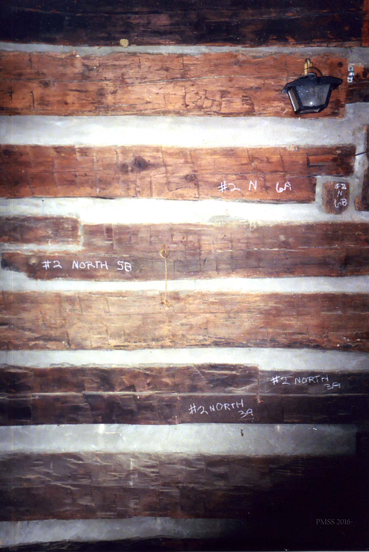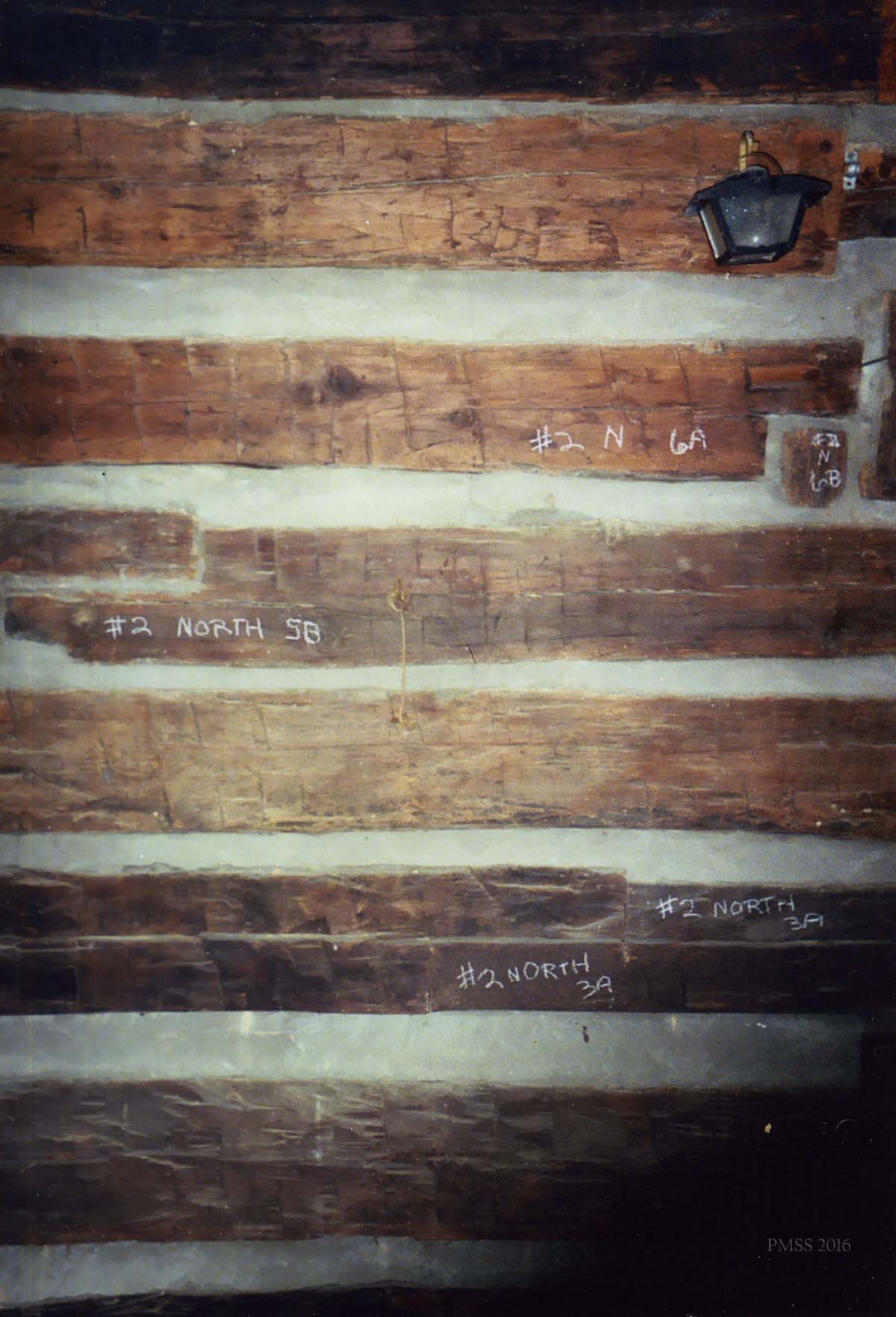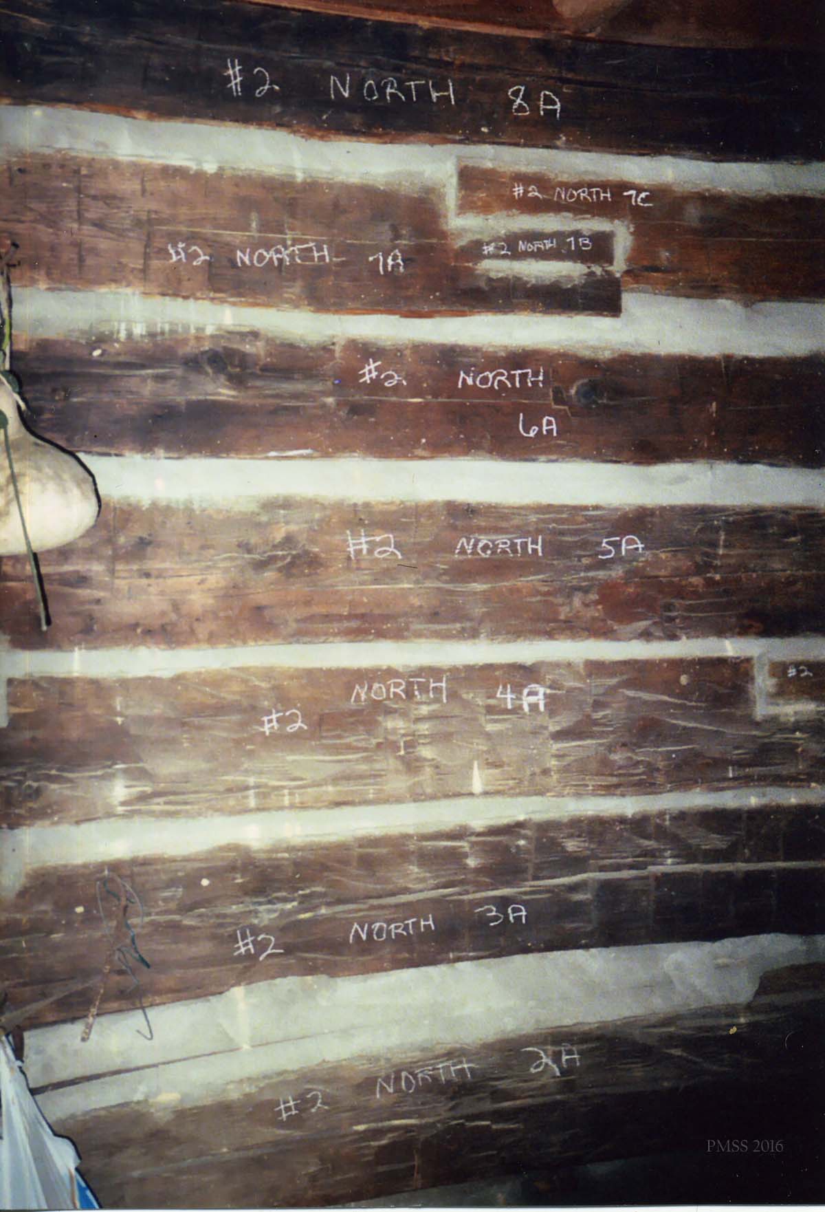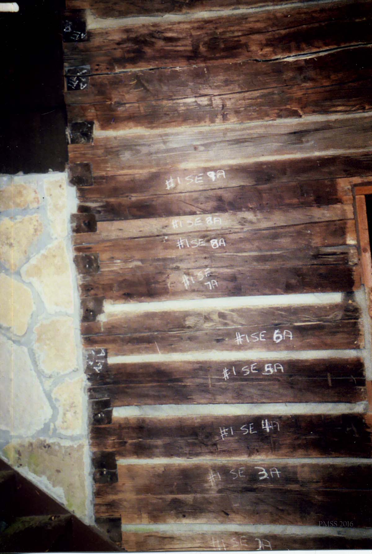 - William Hayes Cabin. Stored in PMSS Barn, c.2008. Patrick Kennedy, consultant, 2013. [IMG_1932.jpg]