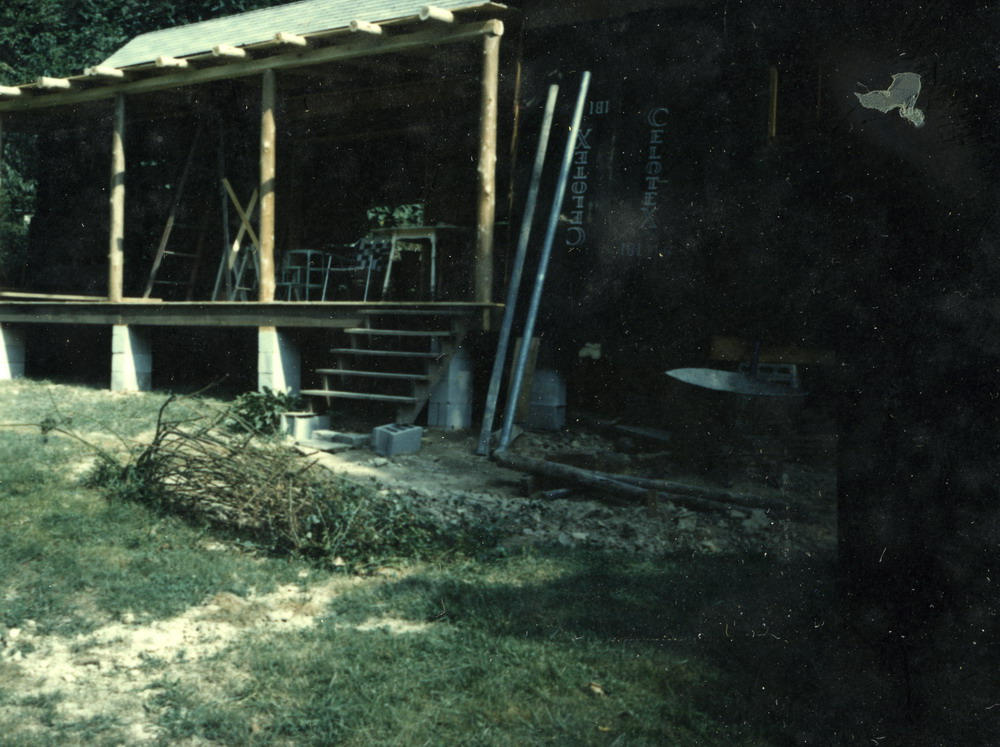 Later additions of a lower floor bedroom and bath (new construction) and a greenhouse extended the facade of the cabin and a lower basement was excavated in the late 1980s with its entry below the new bedroom and bath. A three-car two-story pole barn was constructed during the early years of construction to provide a workshop and storage facility.