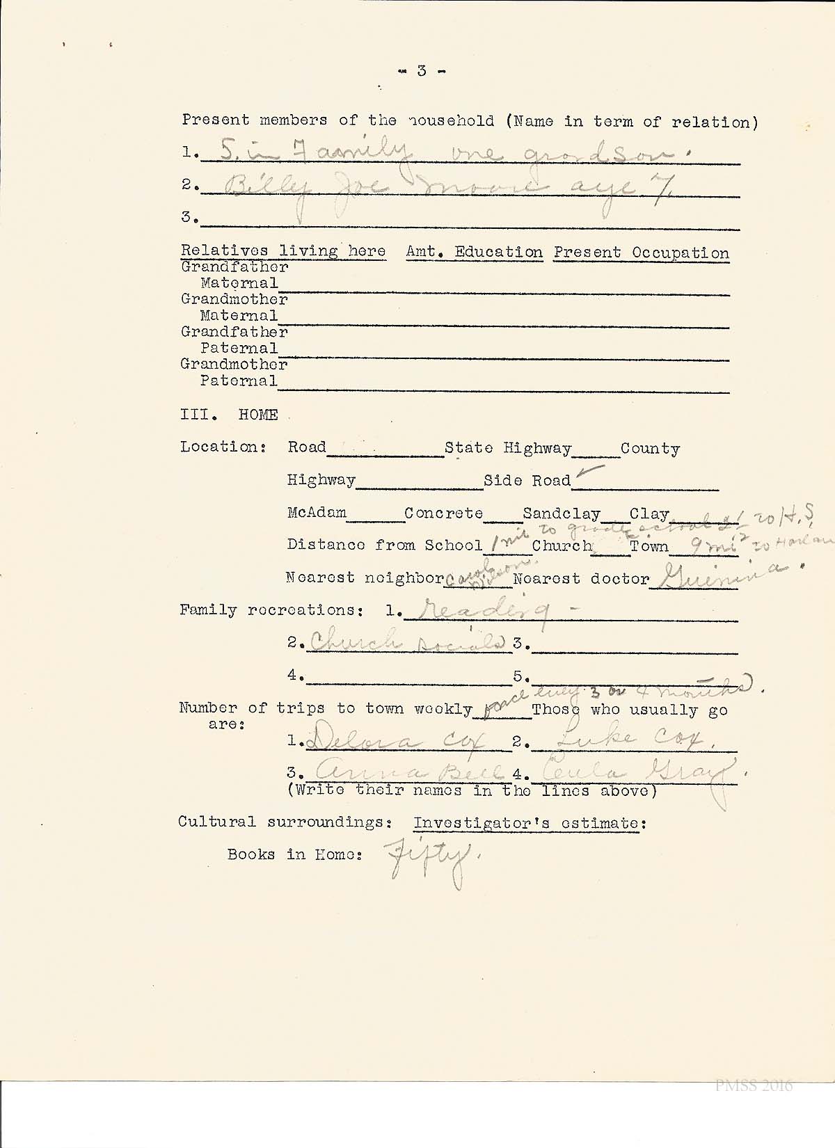 Present members of the household: 5 in family, one grandson. Billy Joe Moore, age 7.