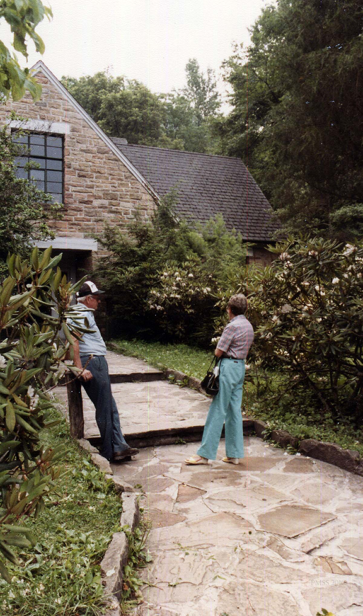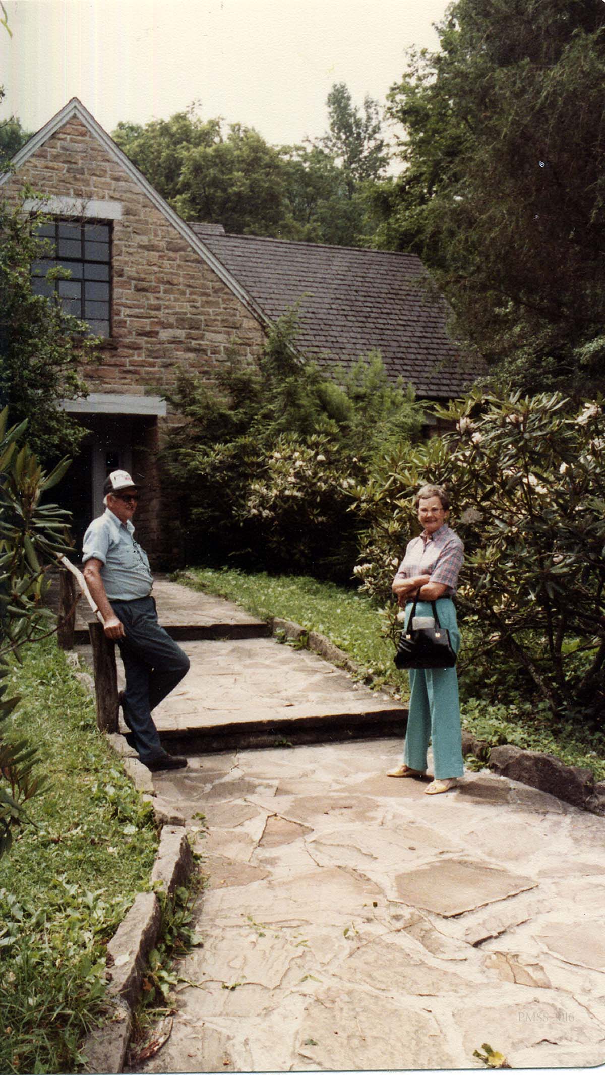 [schuler_mem_021e.jpg] Ruth and unidentified man on stone walk in front of Laurel House.