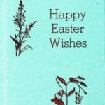 [schuler_mem_004.jpg] Cover of greeting card on aqua blue paper, with flower sketches and the words, “Happy Easter Wishes.”