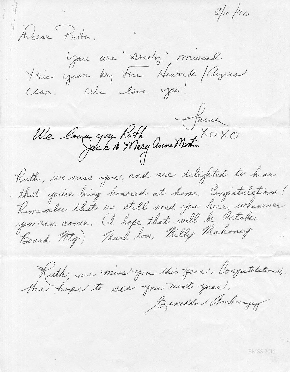 TAGS: Ruth Shuler Dieter Appreciation Album II ; correspondence to Ruth Shuler Dieter ; photographs of Ruth Shuler Dieter ; PMSS Association of Alumni and Friends ; PMSS students ;