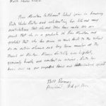 Page 36. Hand-printed letter from Bill Ramsay, President, Board of Directors. “…she has giving so much back to the School as an active alumna and long-term member of the Board of Directors.”