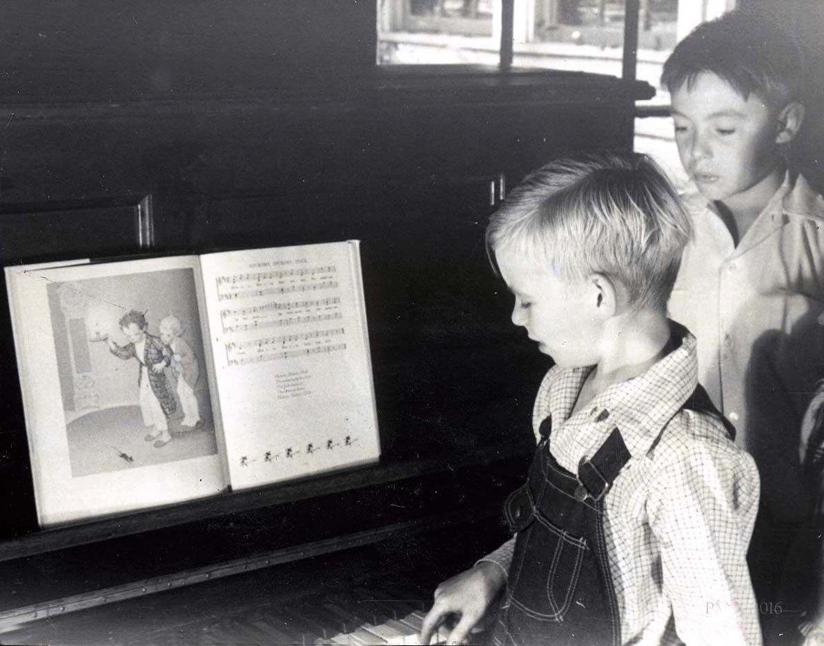 TAGS: 52 VII Life Work Children and Classes ; Pine Mountain Settlement School ; children ; classes ; cows ; mules ; farms ; farming ; classes ; education ; Mary Rogers ; libraries ; Thelma Wilder ; Phyllis Wilder ; Lois Turner ; Alonzo Turner Jr. ; Glyn Austin “Pete” Turner ; Steven Hayes ; Helen Hayes ; Ralph Cornett ; Mable Cornett ; Geneva Browning ; Ruby Yokum ; Jackson twins ; Creech Fountain ; school bus ; picnics ; playground ; ploughing ; Grace Rood ; school lunches ; music ; puppets ;