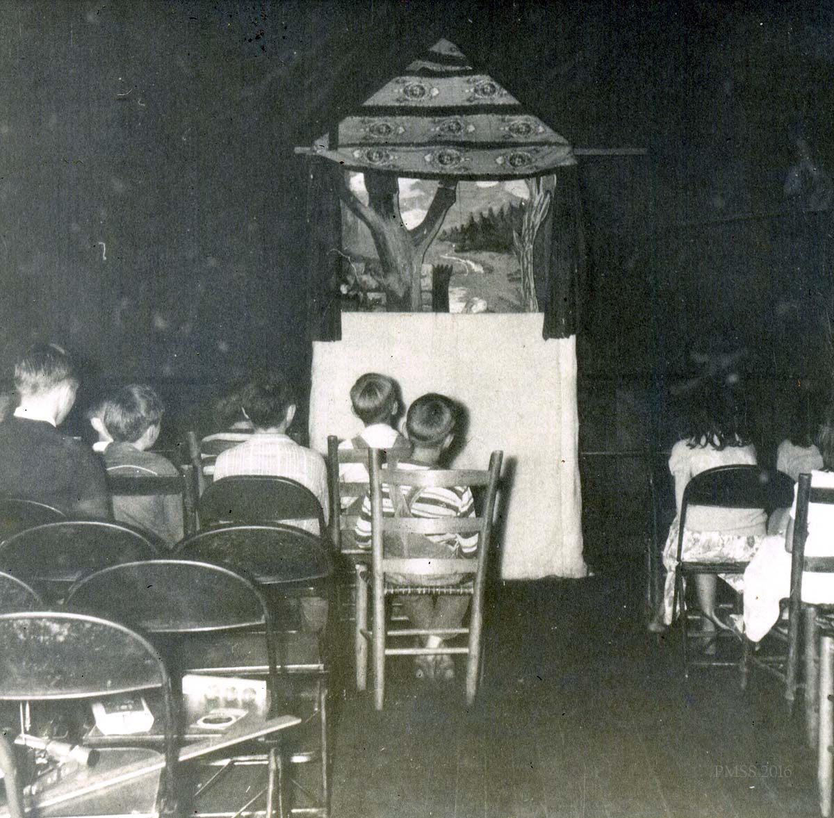 - Puppet show in Burkham Schoolhouse auditorium. Series VII-52 Children & Classes. [elem_035.jpg]